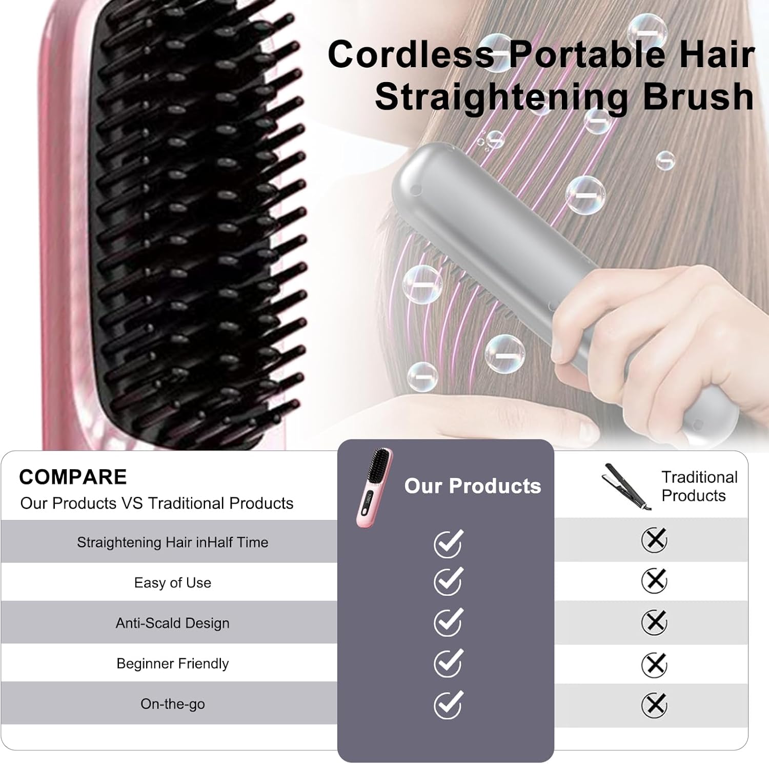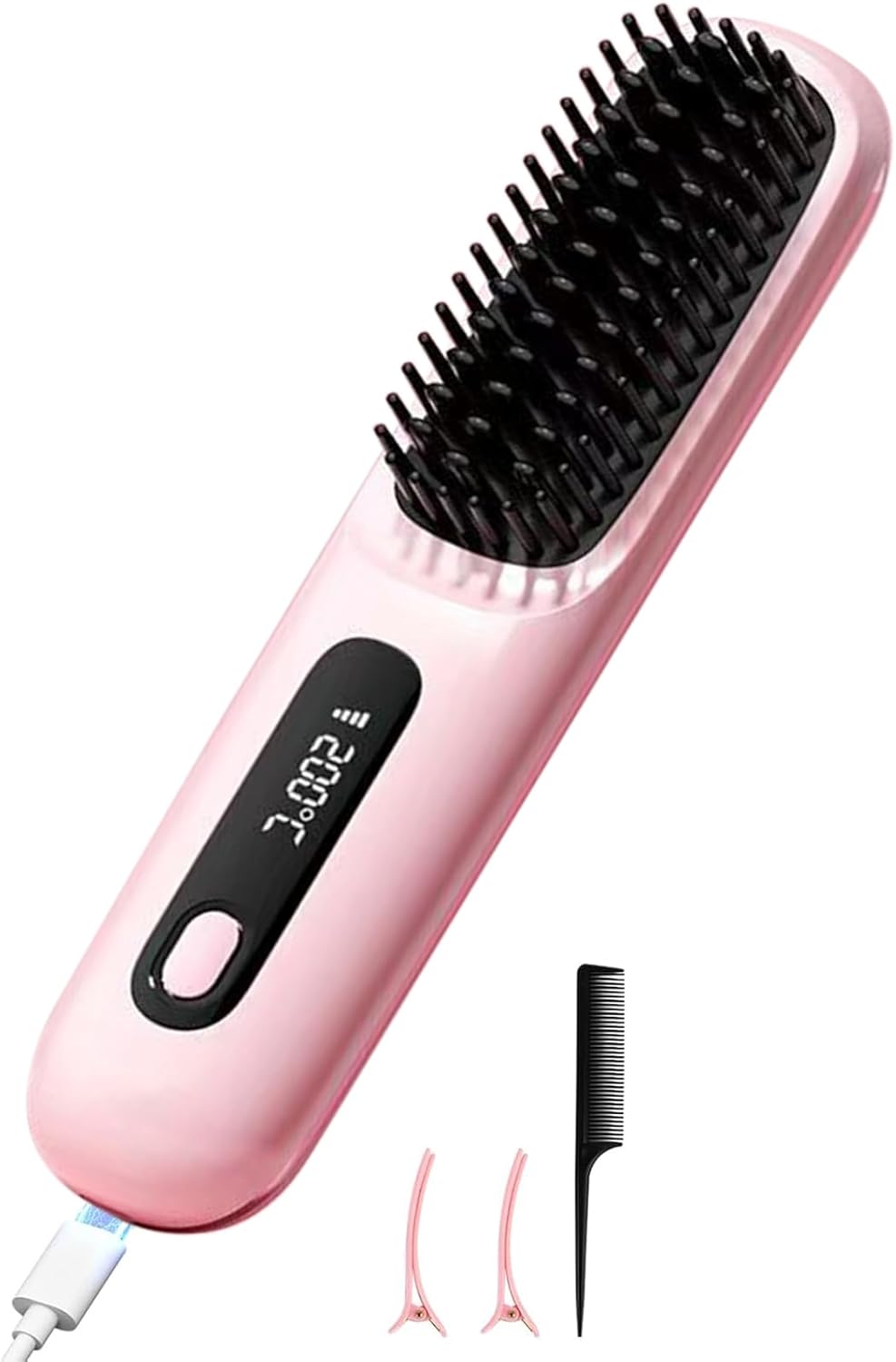 Avis et témoignages clients sur : Fer à lisser sans fil – Brosse à air chaud à ions négatifs – Chauffage rapide des années 20 – Céramique et design anti-brûlure pour tous les types de cheveux – Rechargeable par USB (rose)