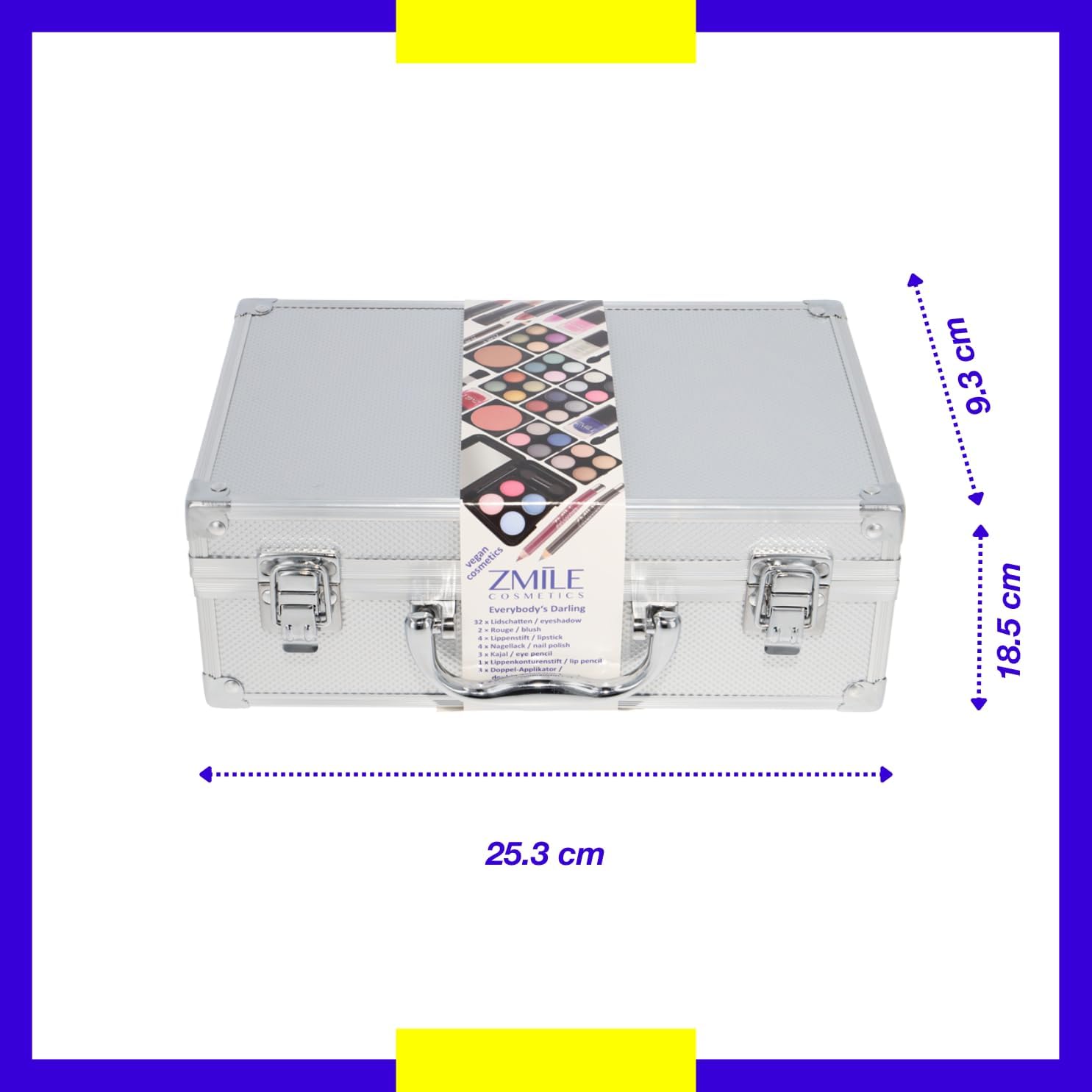 - La mallette cosmétique aluminium contient 51 pièces essentielles pour un maquillage complet.