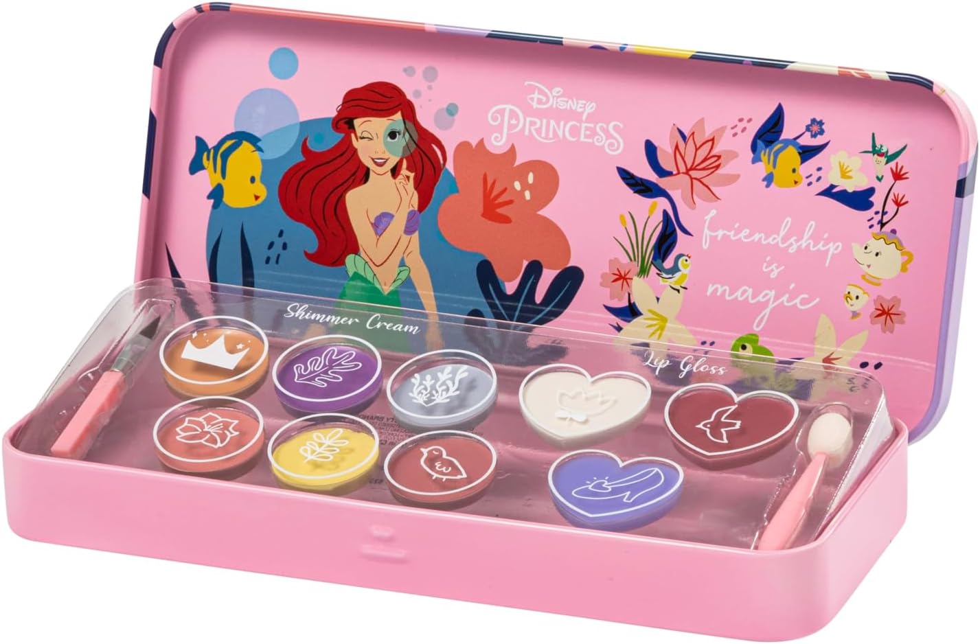 - Deux applicateurs de maquillage inclus pour un look de princesse complet, permettant de mélanger et d’associer les teintes.