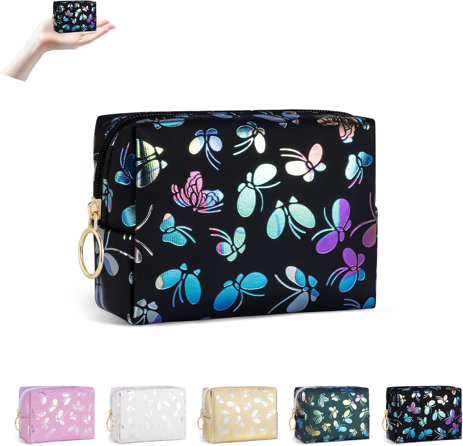 Avis et témoignages clients sur : Mini Pochette Maquillage Petite Trousse de Maquillage Mini Trousses de Toilette Fille de Voyage en Cuir avec Papillons Portable Trousse pour Cosmétique Écouteurs Bijoux Organisateur,10*8,3*6cm Noir
