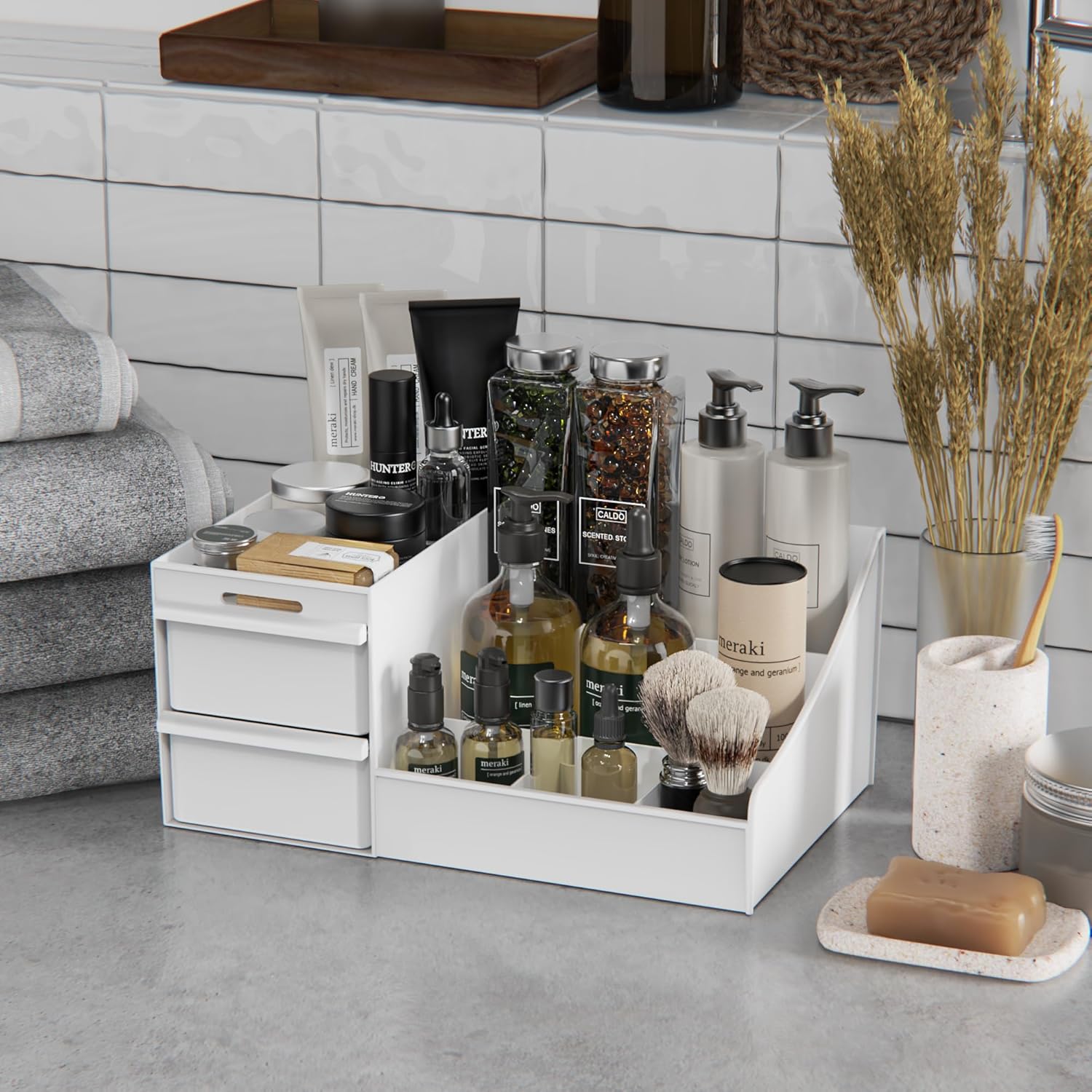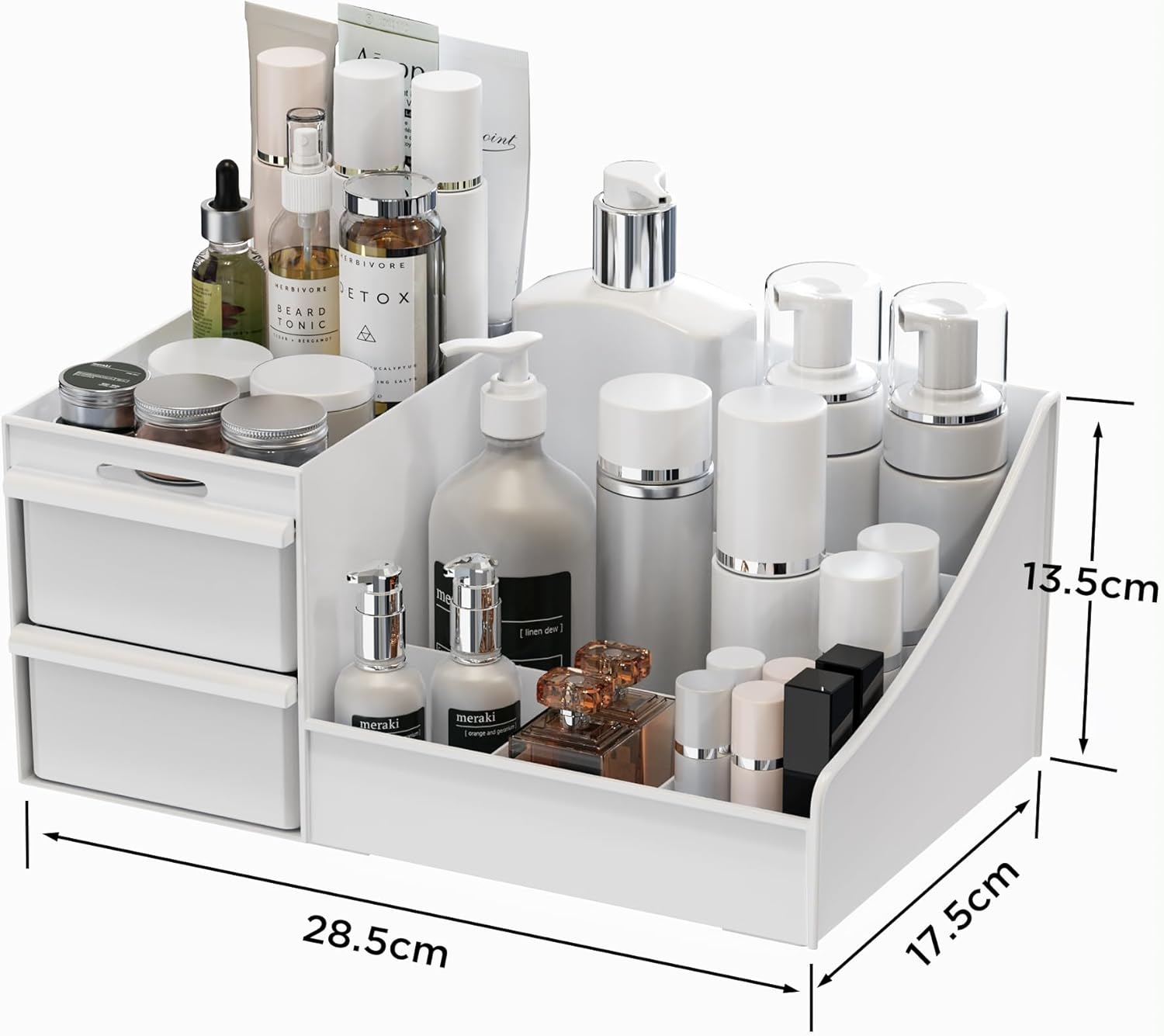 Organisateur de maquillage pour dressing et salle de bain : rangement élégant avec grande capacité et 2 tiroirs pratiques