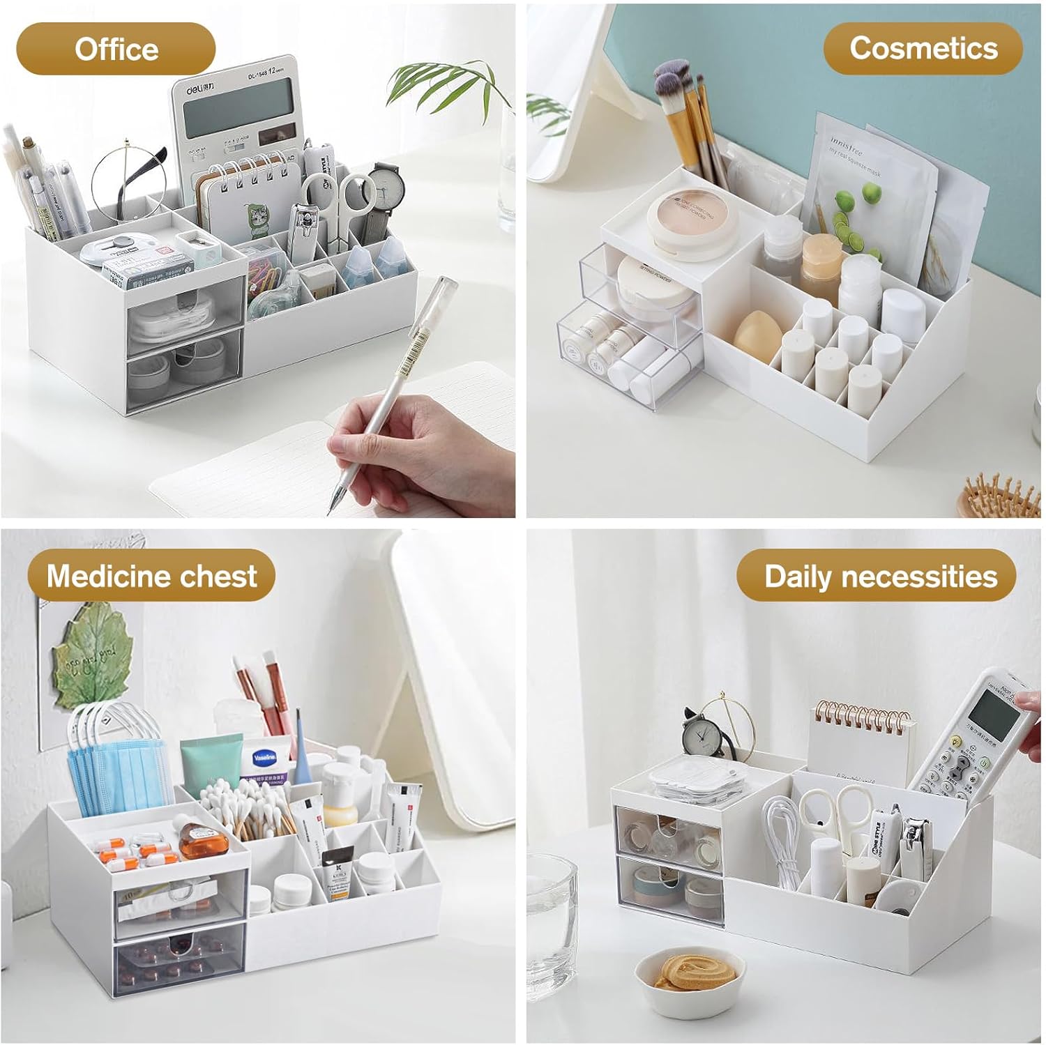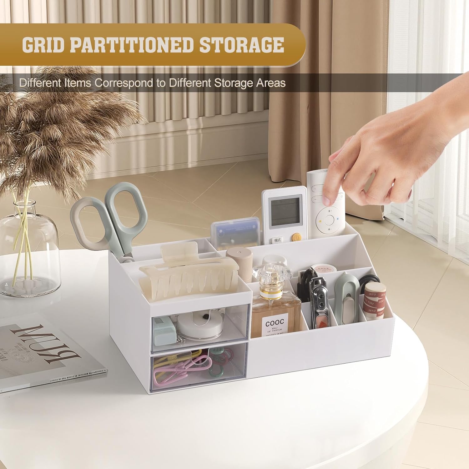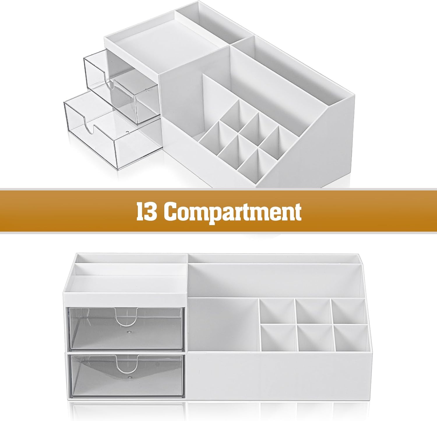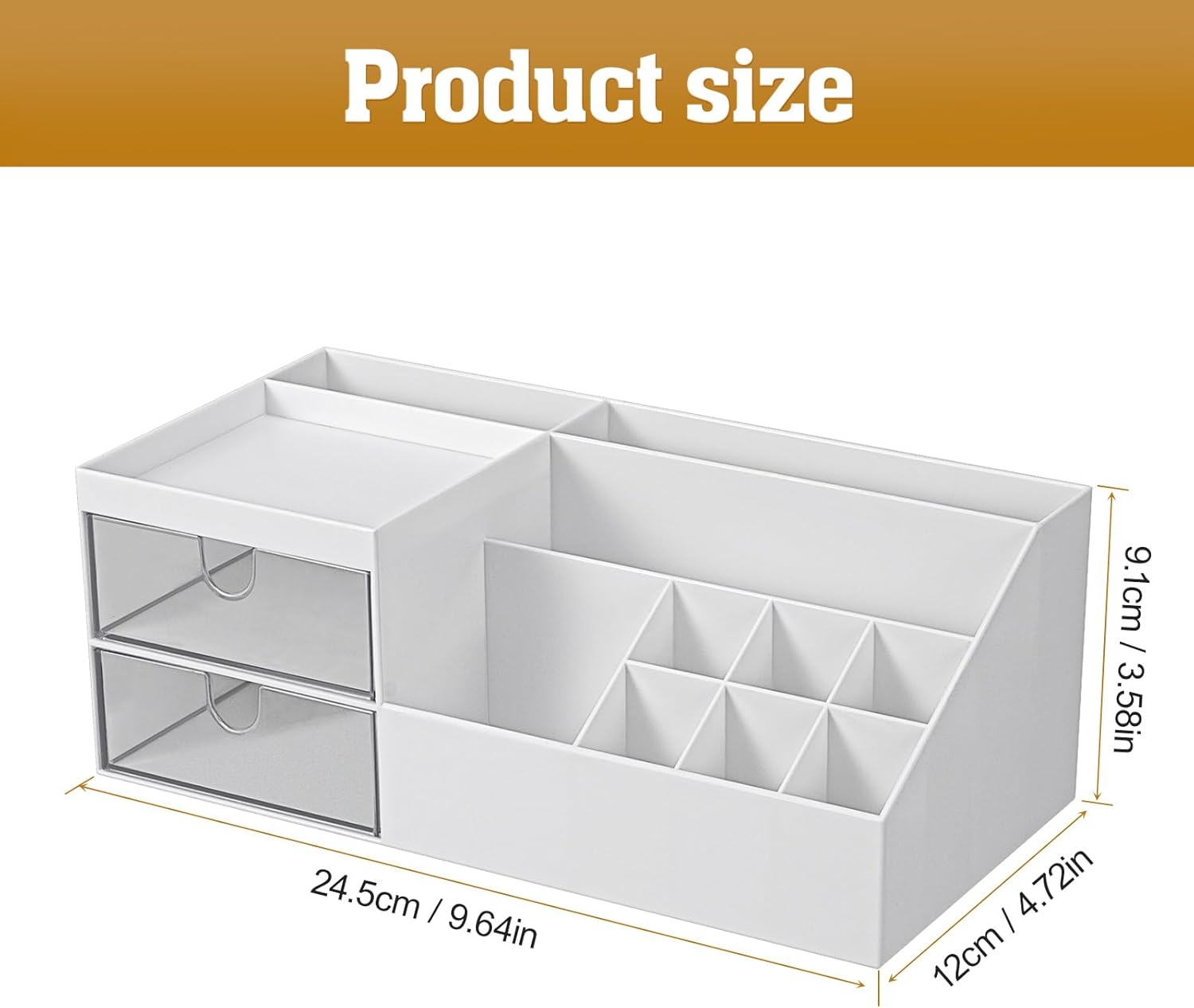 - Optimisation de l’espace : Grâce à ses dimensions compactes de 27 x 14 x 10,2 cm, cet organisateur s’adapte à tous les espaces, que ce soit sur une commode, un bureau ou dans la salle de bains.