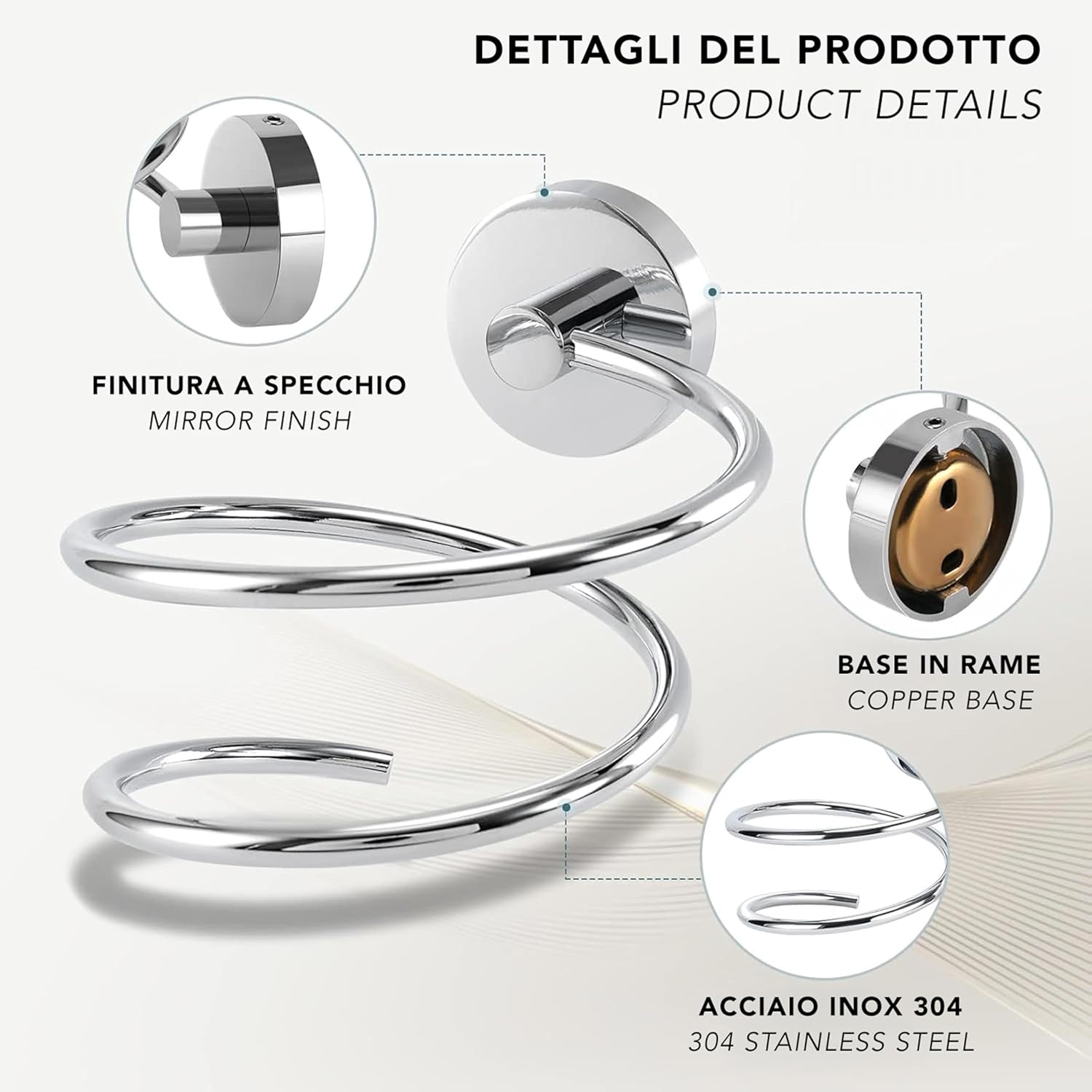 - Le porte-sèche-cheveux IPEA est conçu avec un design moderne en spirale, parfait pour toutes vos décorations.