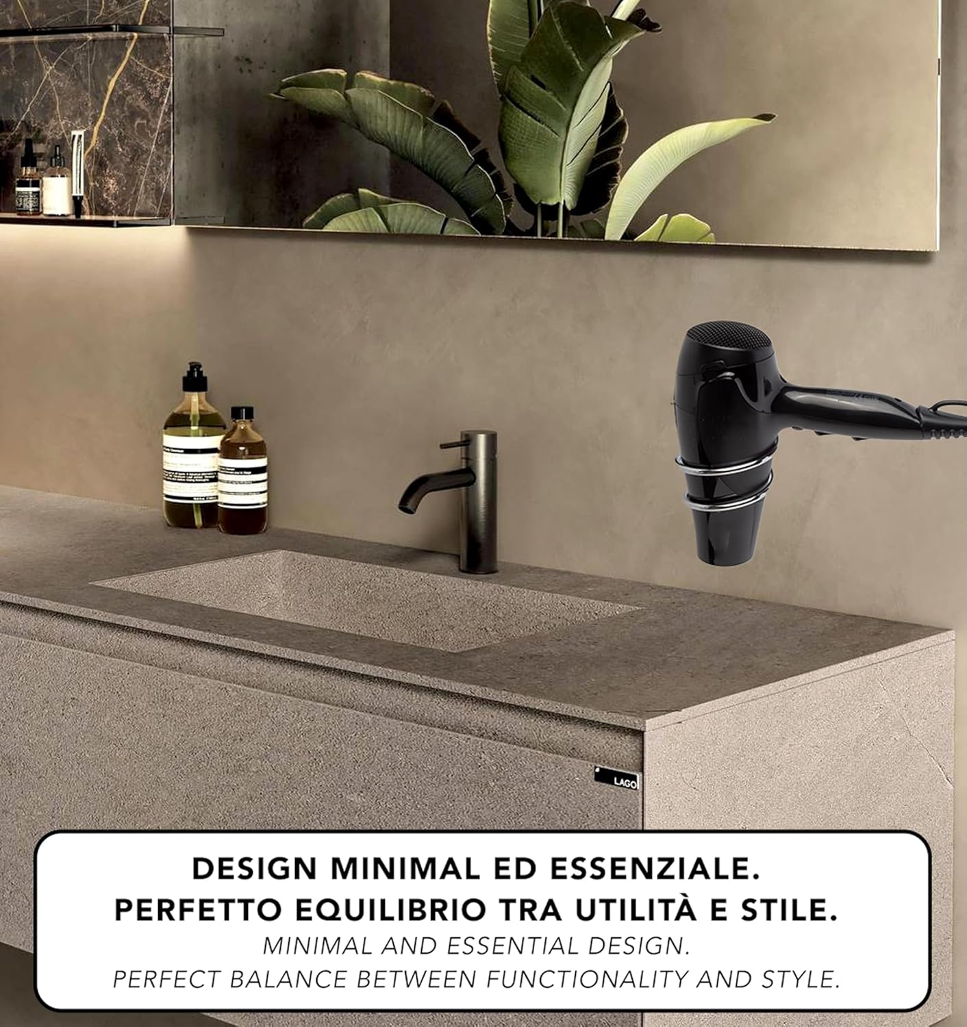 “J’adore ce porte-sèche-cheveux ! Il est vraiment pratique et s’intègre parfaitement dans ma salle de bain.” – Francesco