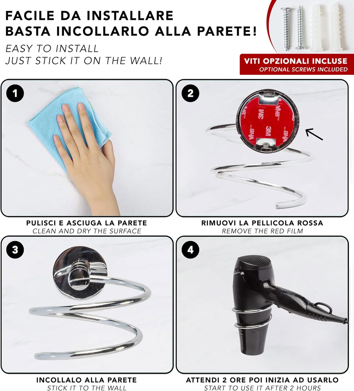 - Sa structure en spirale antidérapante assure une stabilité optimale pour votre sèche-cheveux.