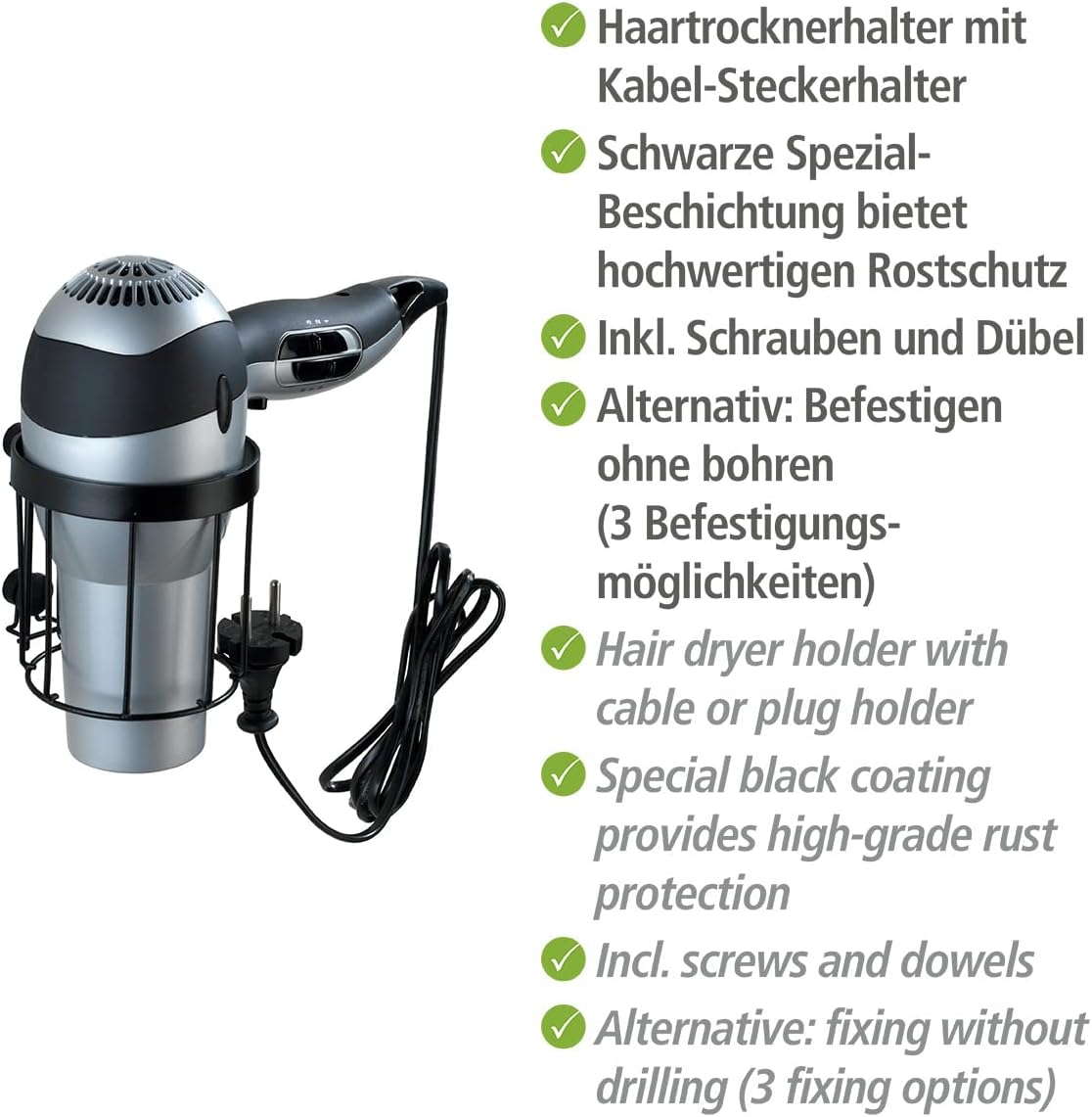 Avis et témoignages clients sur : WENKO Porte-sèche-Cheveux Classic Plus Noir – Porte sèche-Cheveux avec Protection antirouille de qualité supérieure, Acier, 12.5 x 10 x 12.5 cm, Noir