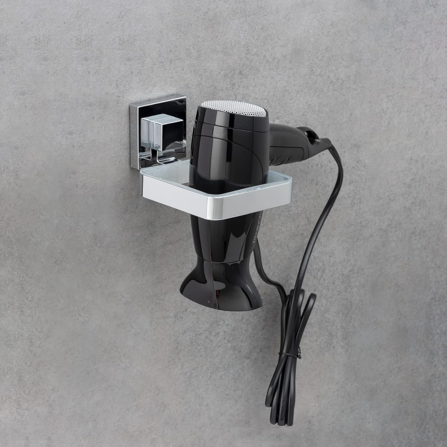 Porte sèche-cheveux en acier inox Quadro brillant : l’accessoire idéal pour une salle de bain élégante et bien organisée
