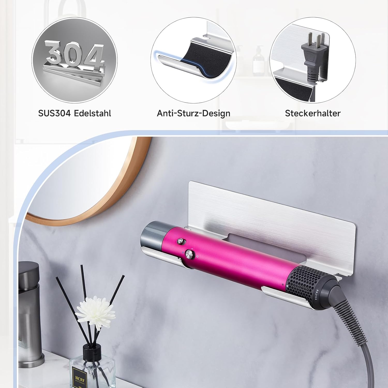 - Le support sèche cheveux YYBO est fabriqué en acier inoxydable SUS304, garantissant durabilité et résistance à la corrosion.