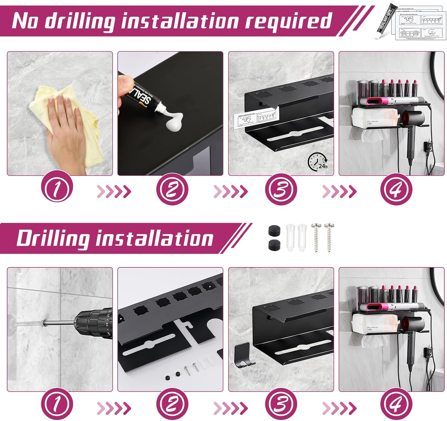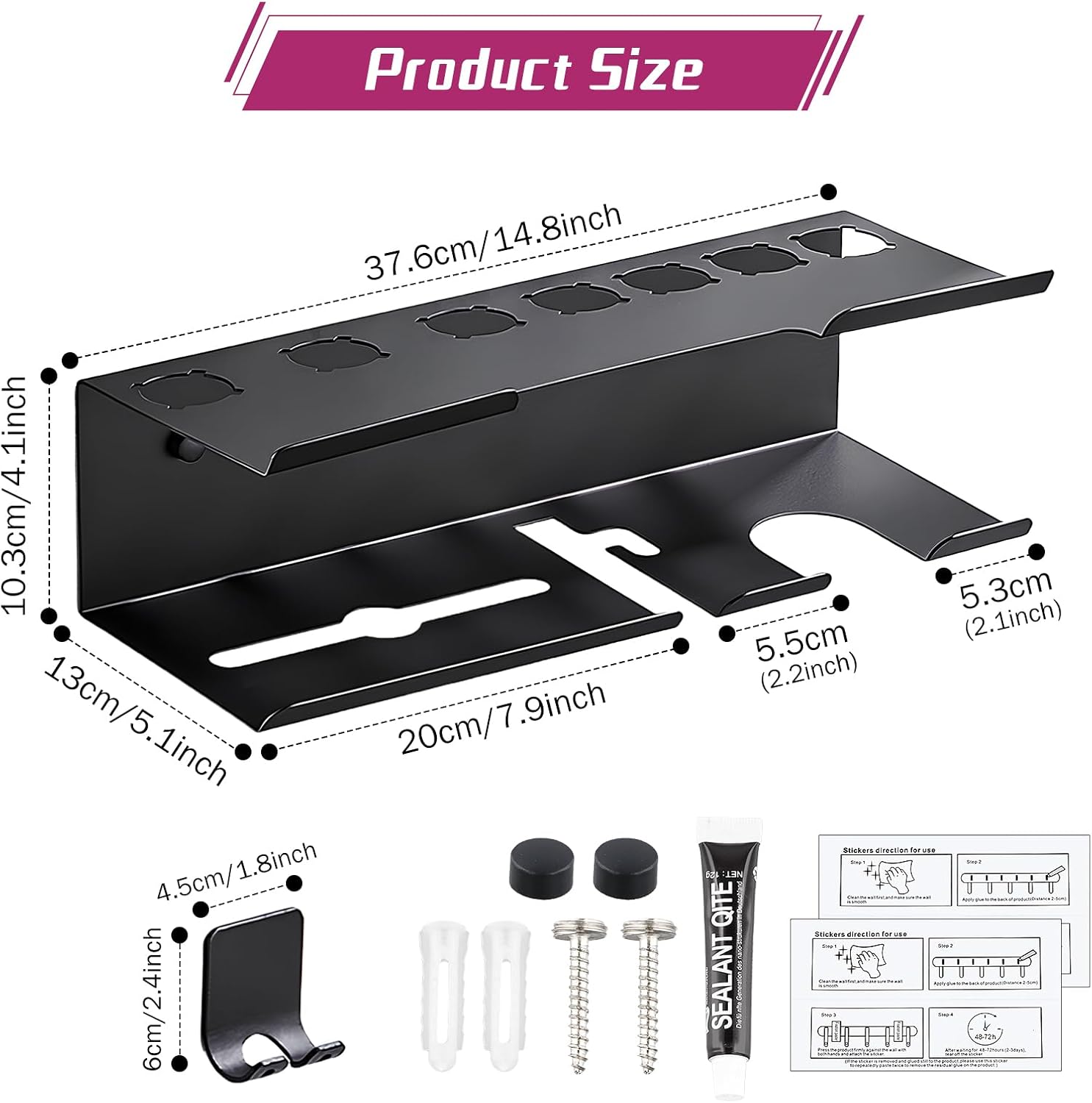 - Économie d’espace : Éliminez le désordre et optimisez votre rangement avec ce support qui permet de garder tous vos outils de coiffure à portée de main et bien organisés.