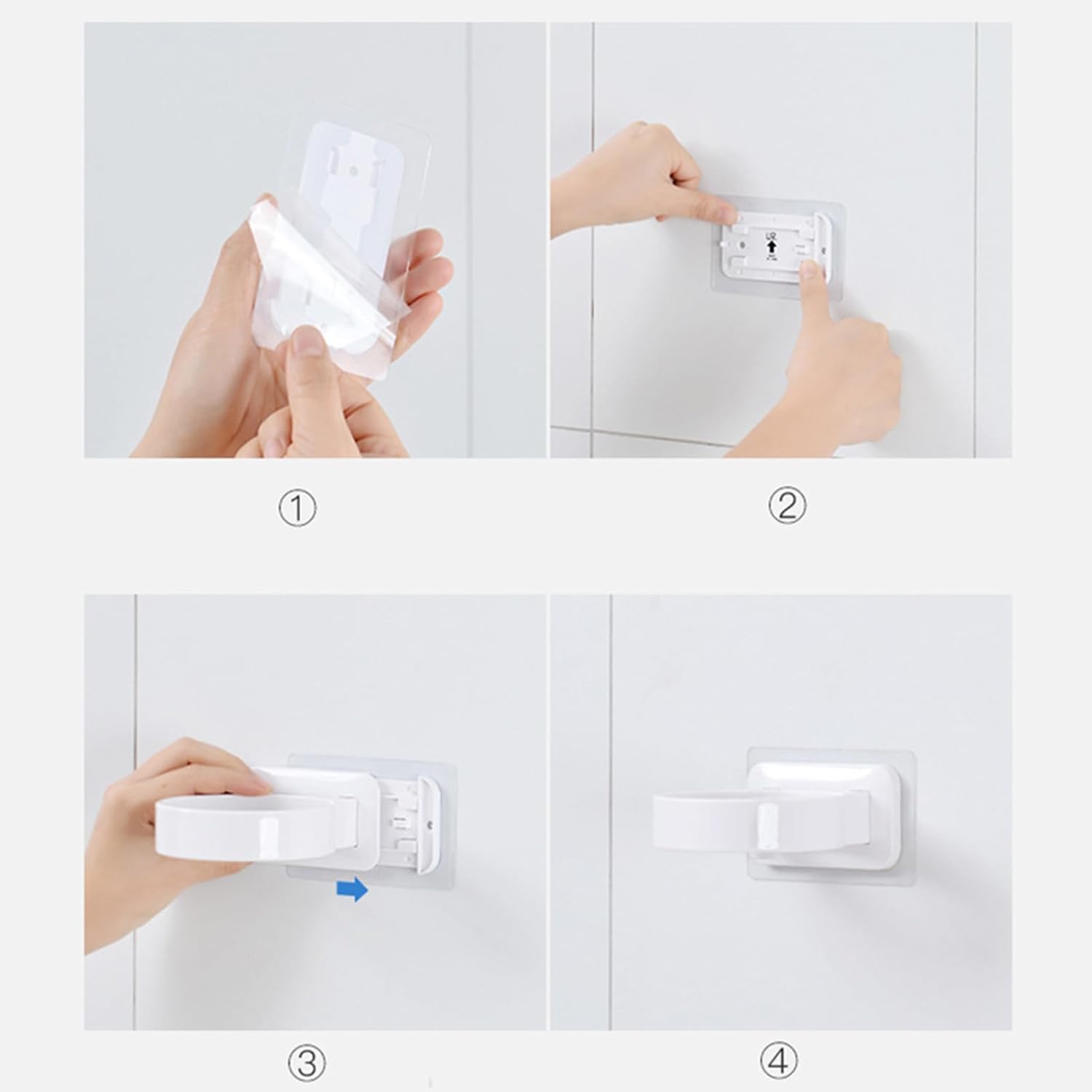 - Installation facile : Grâce au système autocollant, il suffit de fixer le support sur une surface lisse et de le laisser reposer pendant 24 heures. Pas besoin de percer des trous ni de laisser de traces.