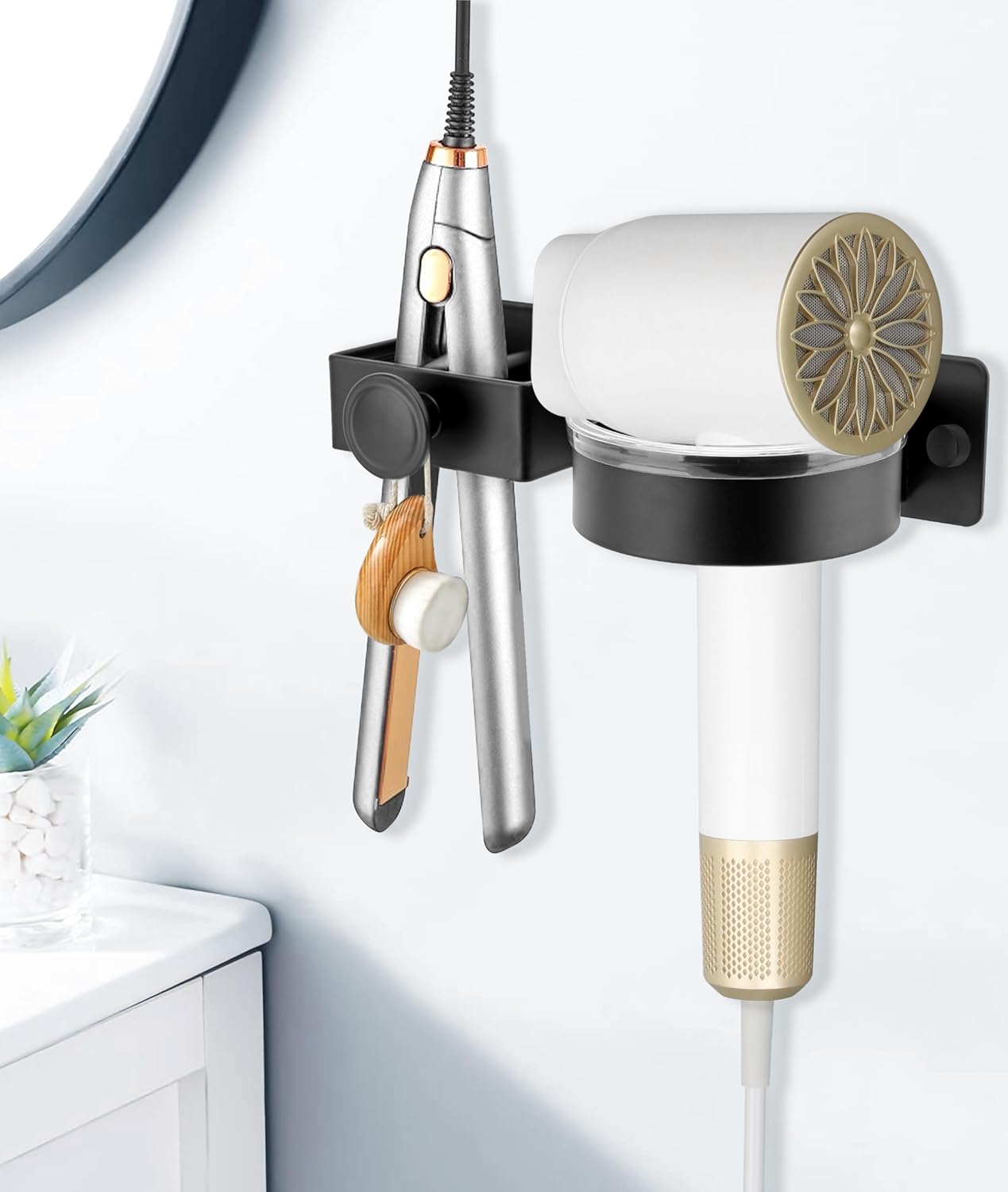 Ce support mural est équipé de deux compartiments individuels, parfaits pour ranger un sèche-cheveux et un lisseur. Ainsi, votre salle de bains reste ordonnée. Découvrez les bénéfices :