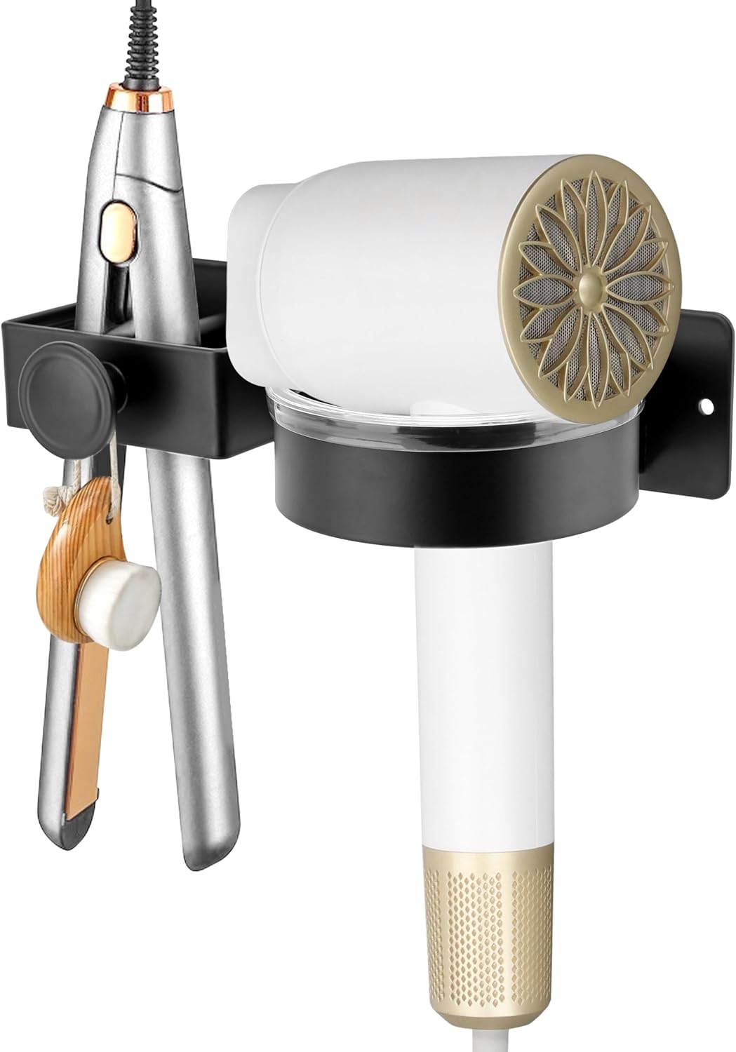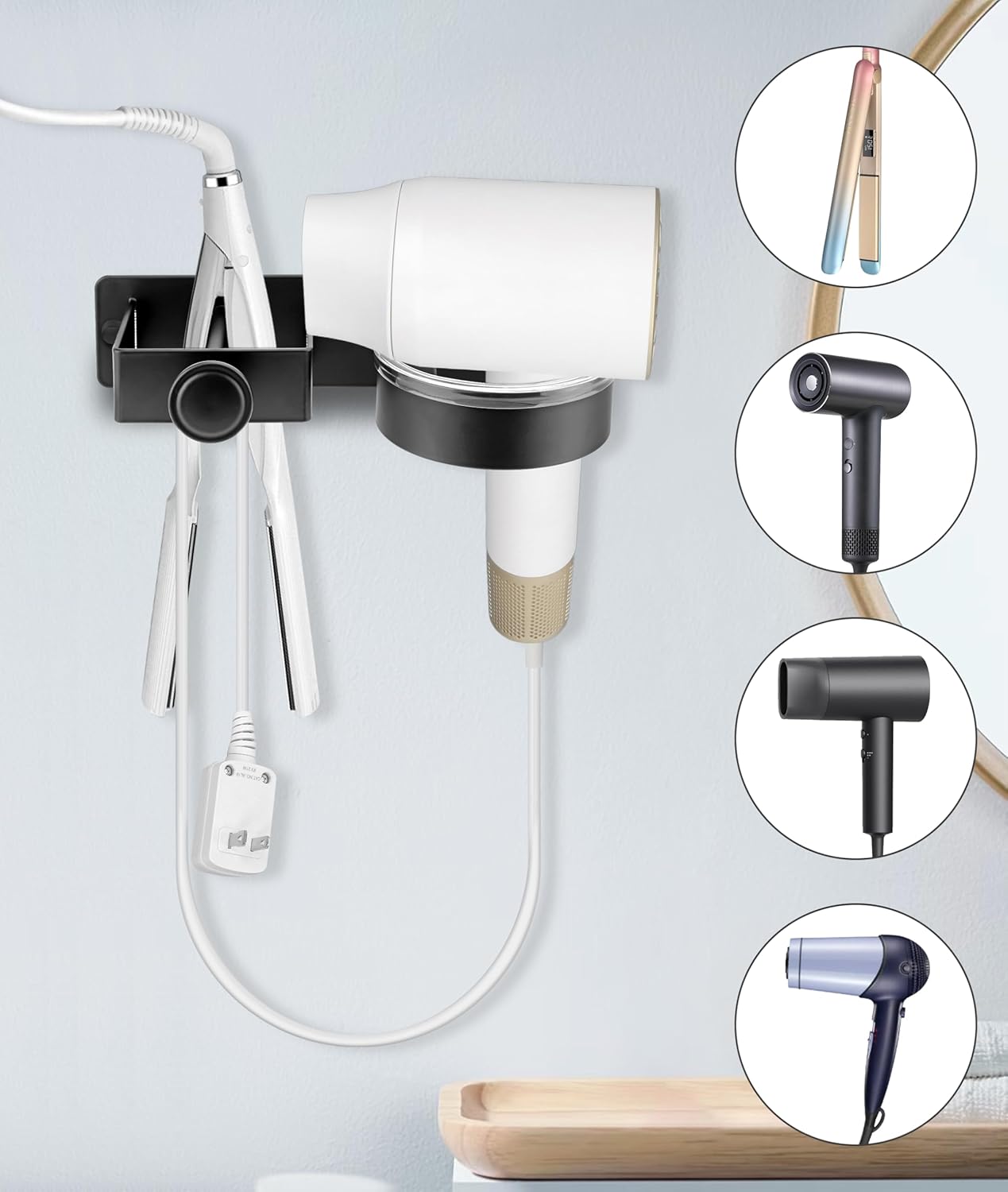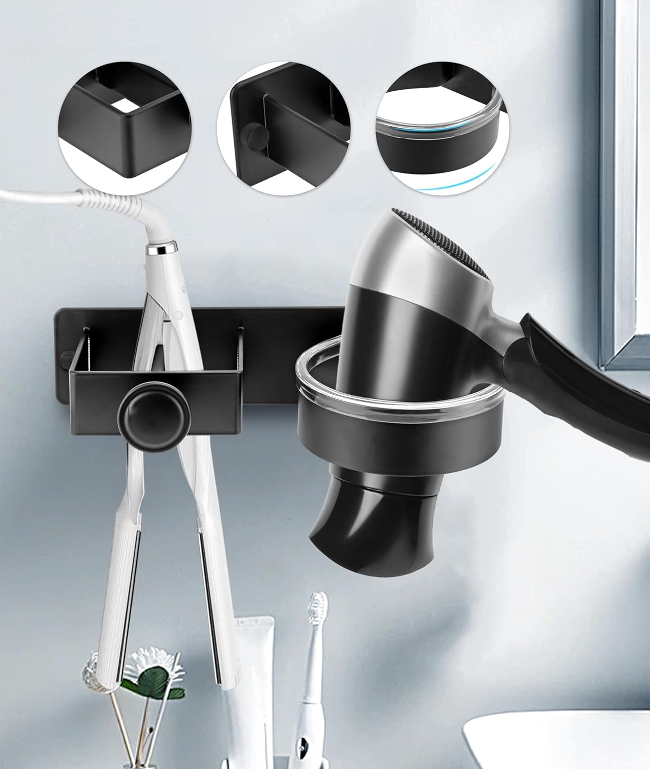 Le porte sèche-cheveux peut supporter jusqu’à 2 kg, ce qui le rend idéal pour la plupart des sèche-cheveux et lisseurs sur le marché.