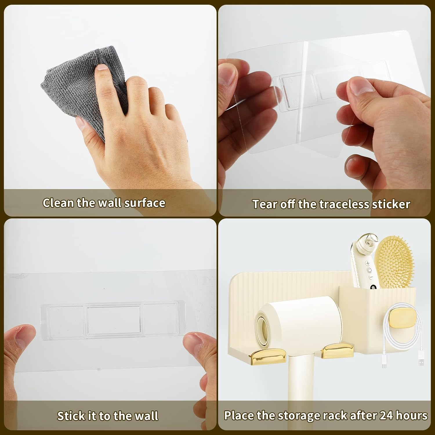 Pour maximiser l’utilisation de ce support, placez-le à proximité de votre miroir afin d’avoir un accès facile à votre sèche-cheveux et à vos produits de beauté. Pensez également à le nettoyer régulièrement pour maintenir son éclat et sa fonctionnalité.