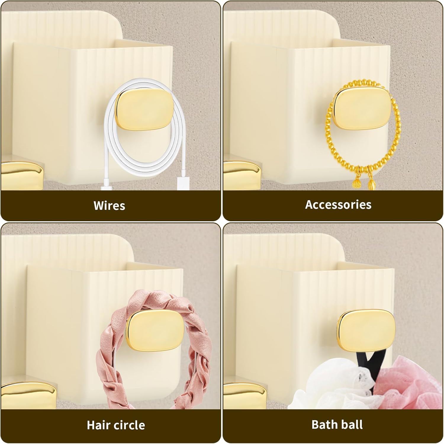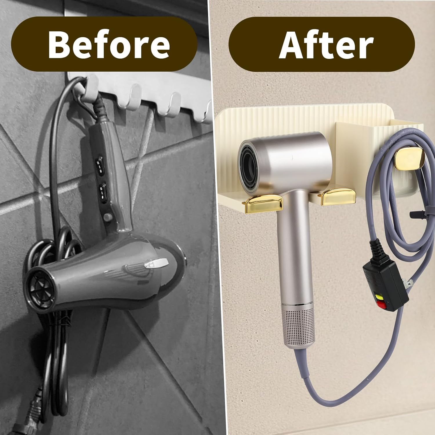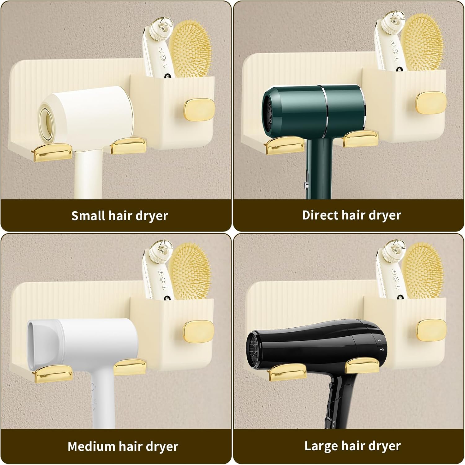 Avis et témoignages clients sur : Porte sèche-Cheveux sans Trous – 2 Compartiments – Installation Murale en Or crème. Porte-sèche Cheveux Mural, Porte-sèche Cheveux, Support sèche Cheveux