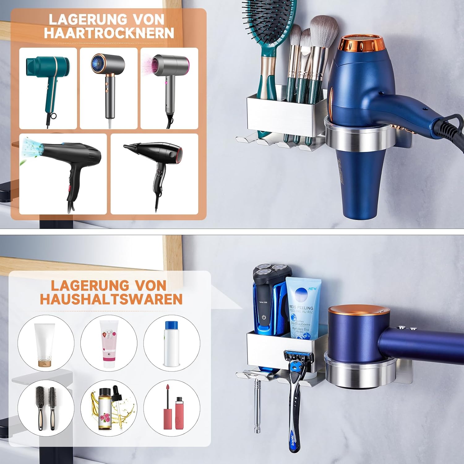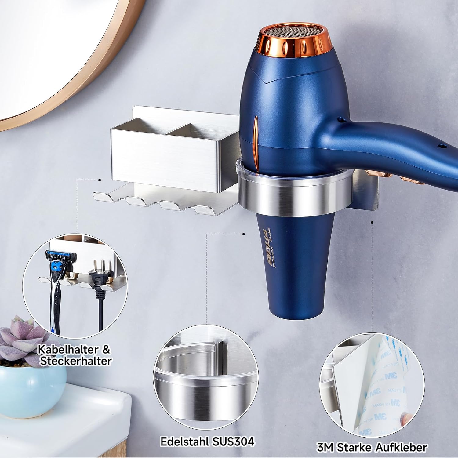 Support de sèche-cheveux en acier inoxydable durable