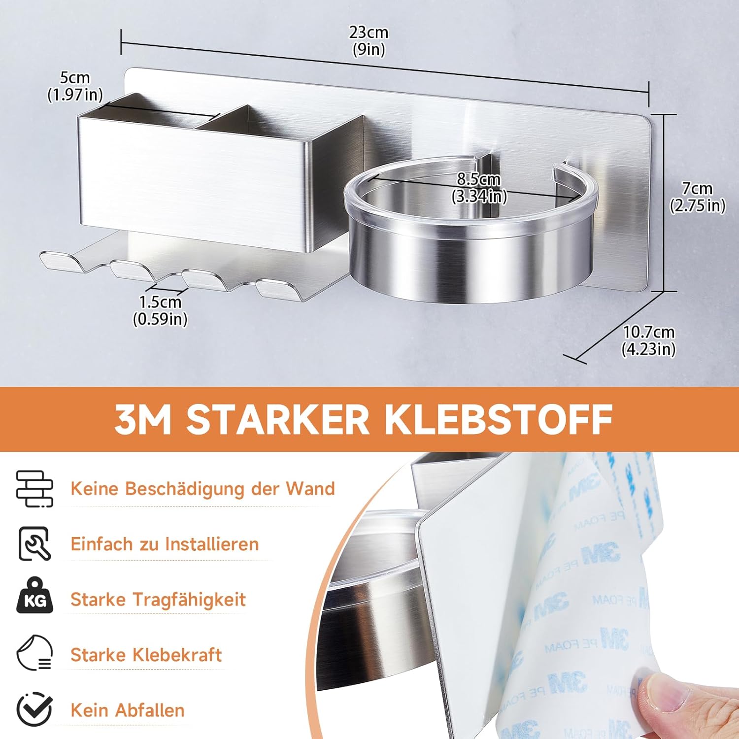 Avis et témoignages clients sur : Porte Seche Cheveux Mural, Support Seche Cheveux sans Percage, Acier Inoxydable Support Seche Cheveux, Porte Rangement Seche Cheveux pour Salle de Bain HôTel De Chambre à Coucher