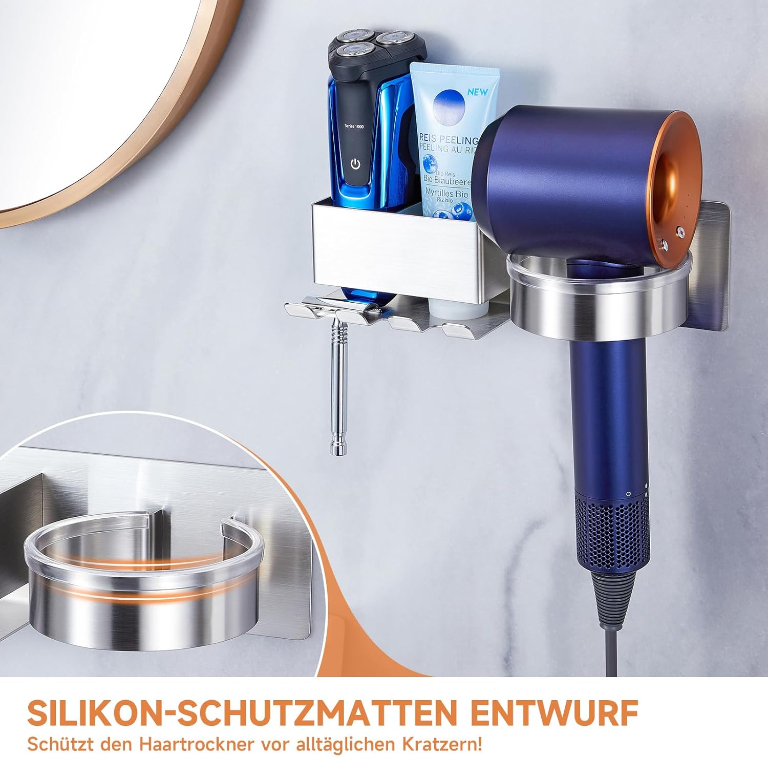 En résumé, ce support de sèche-cheveux en acier inoxydable SUS304 est la solution idéale pour ceux qui recherchent à la fois fonctionnalité et esthétique. Avec sa conception sans perçage, sa protection en silicone, et sa grande compatibilité, il transforme votre espace de coiffage en un véritable havre de paix. Découvrez dès maintenant comment ce produit peut améliorer votre quotidien !