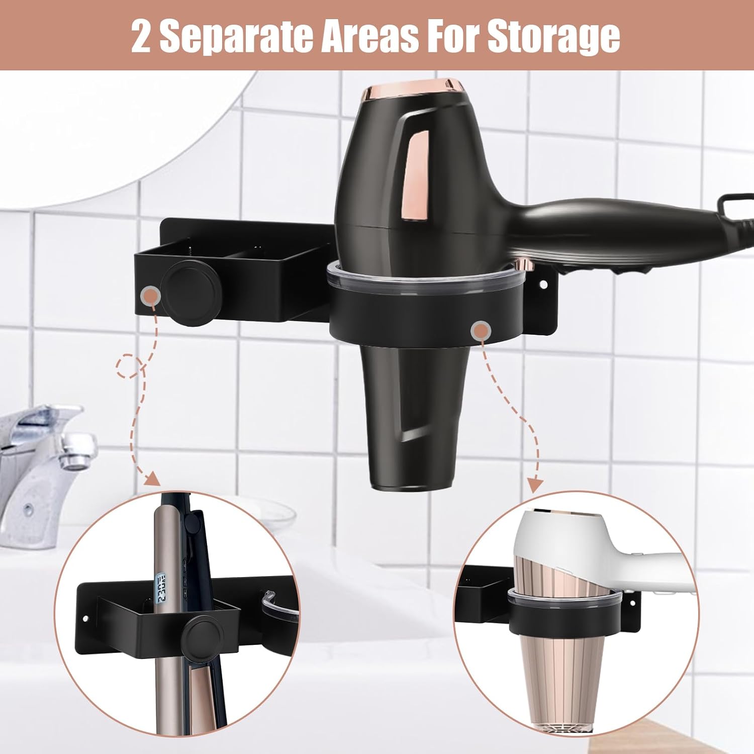 - Compatible avec 99% des sèche-cheveux : Espace organisé et compartiments séparés pour un accès facile.