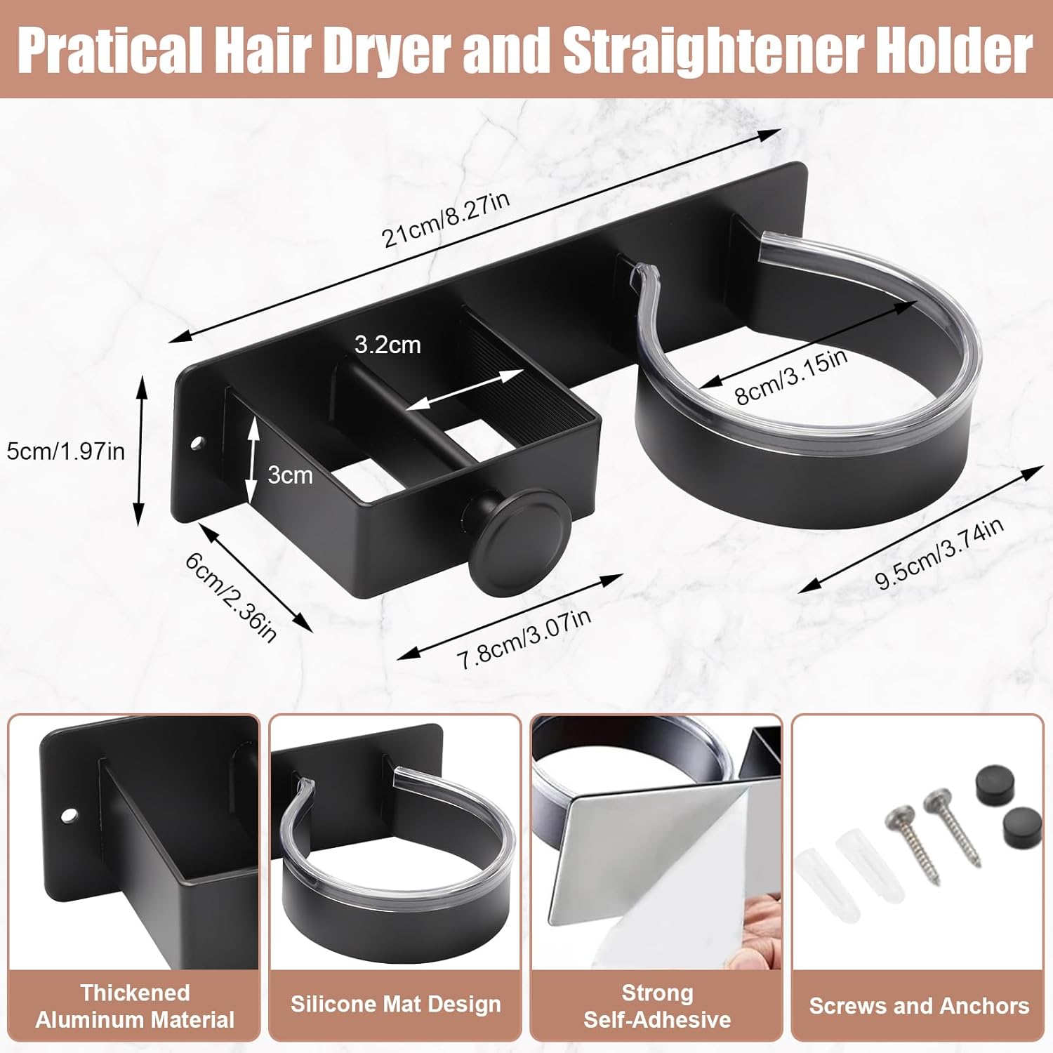 - Équipé d’un coussinet en silicone, il protège votre sèche-cheveux des rayures pendant le rangement.