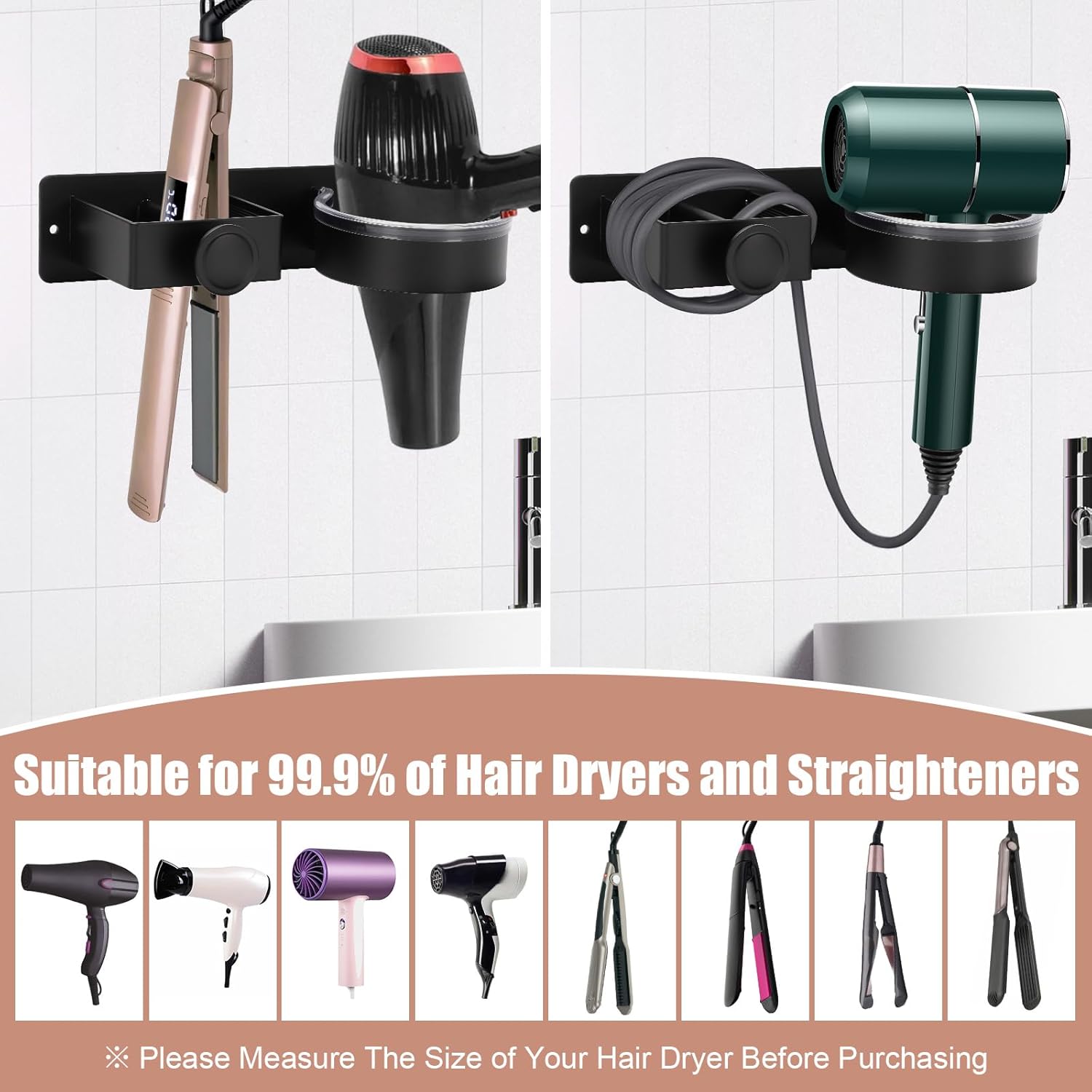 - Compatible avec 99% des sèche-cheveux, il offre un rangement ordonné et facilement accessible.