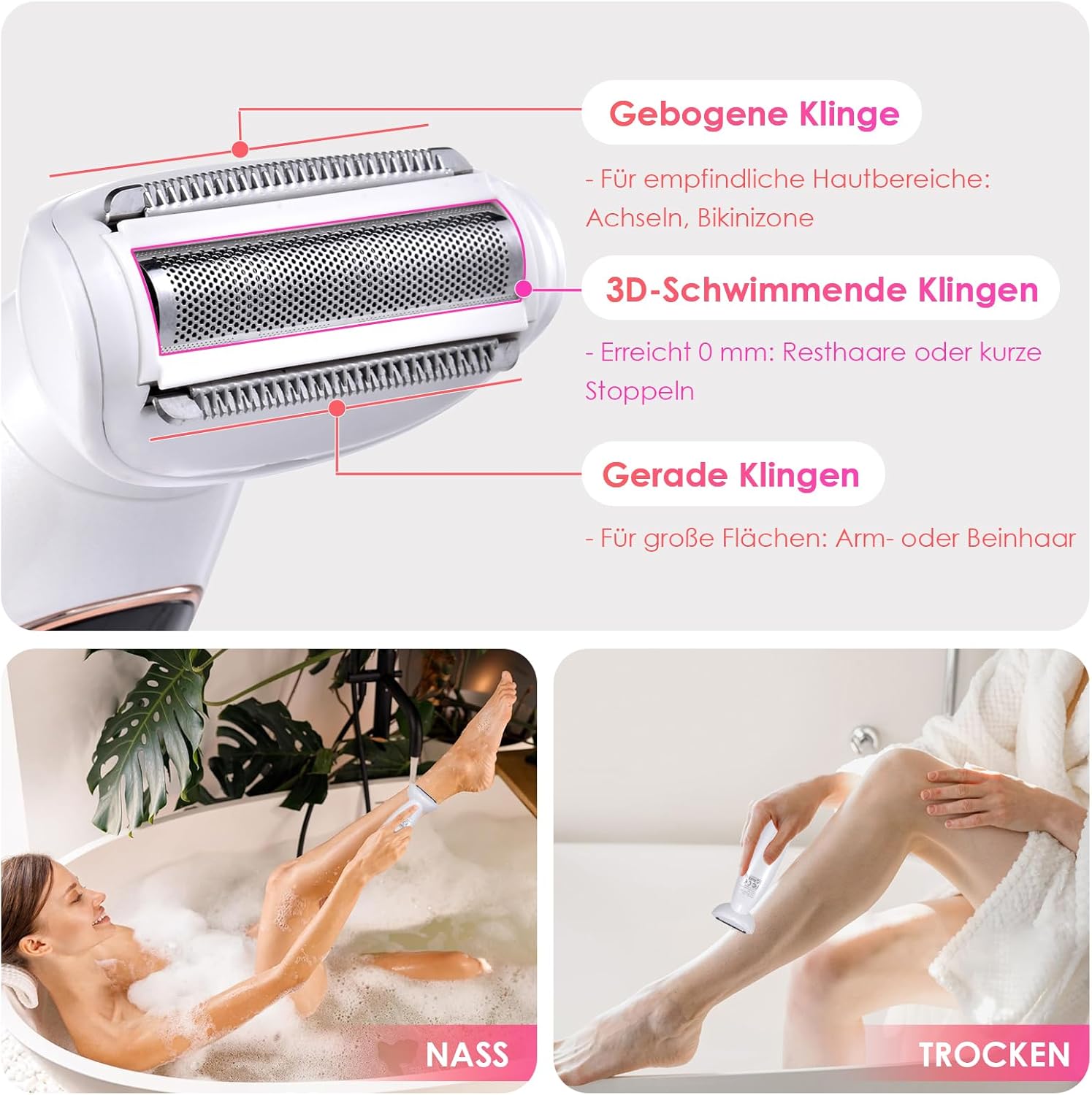 - Rasage indolore : technologie de lame flottante 3D pour un rasage doux.