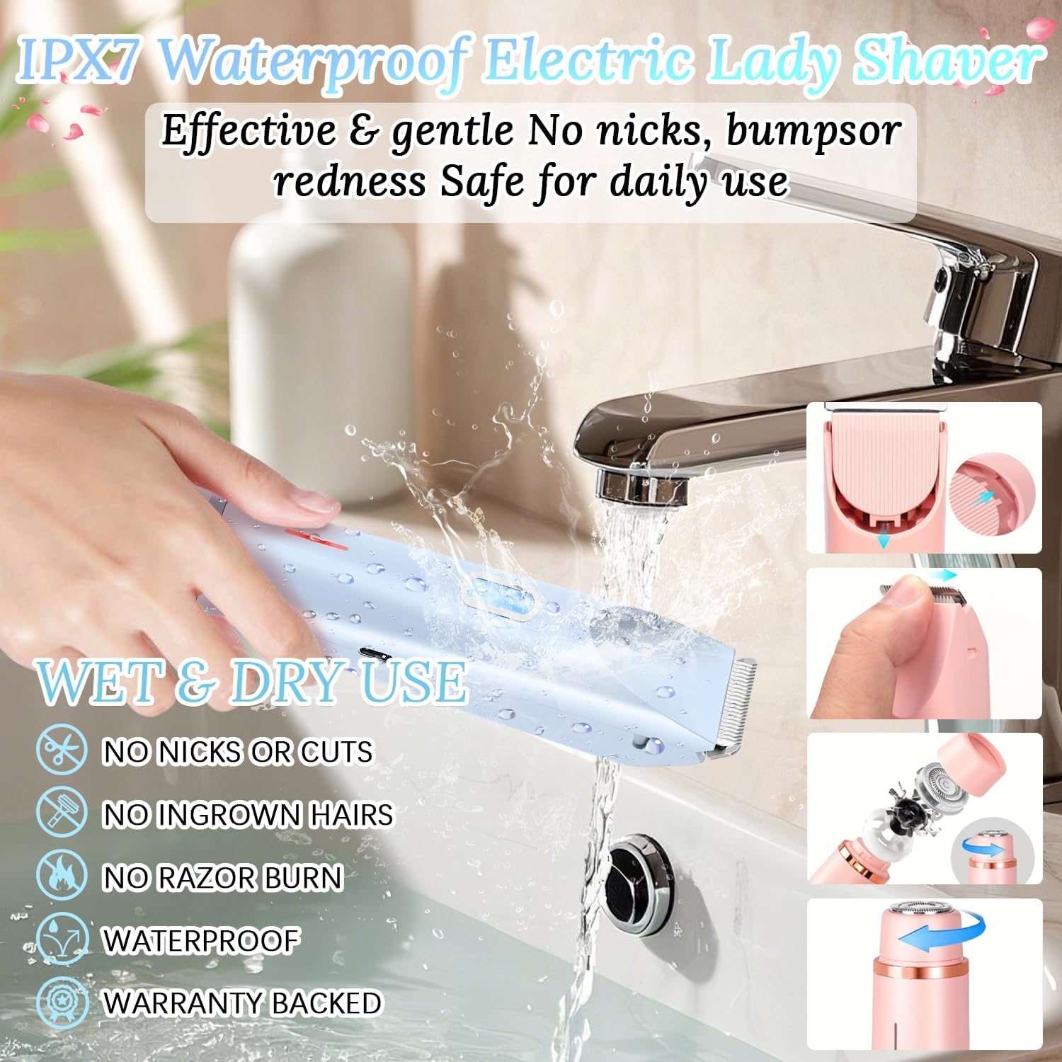 Rasoir Électrique Silky Splash 2 en 1 pour Femmes – Zone Intime Étanche IPX7, Soin Doux et Précis