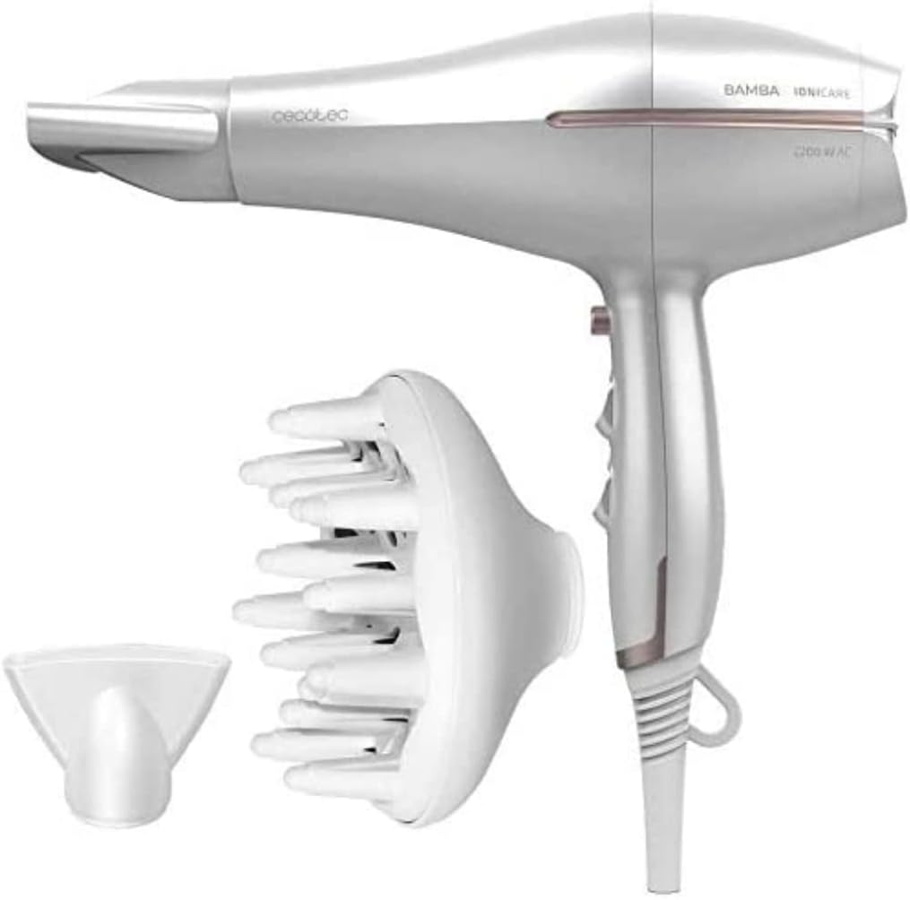 Avis et témoignages clients sur : Cecotec sèche-cheveux ionique avec diffuseur Bamba IoniCare 5300 Maxi Aura avec 2200 W de puissance, moteur DC avec ion réel et grand débit d’air.