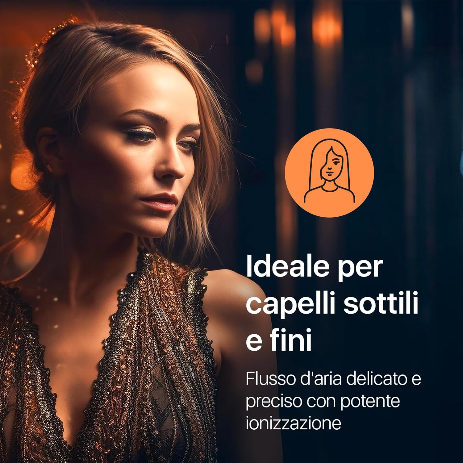 Avec une puissance de 2000 W, ce sèche-cheveux garantit un séchage 20% plus rapide. Sa conception légère (seulement 425 grammes) permet une utilisation prolongée sans fatigue. Idéal pour tous les types de cheveux, il s’adapte à toutes les occasions, que ce soit pour un usage quotidien ou des événements spéciaux.