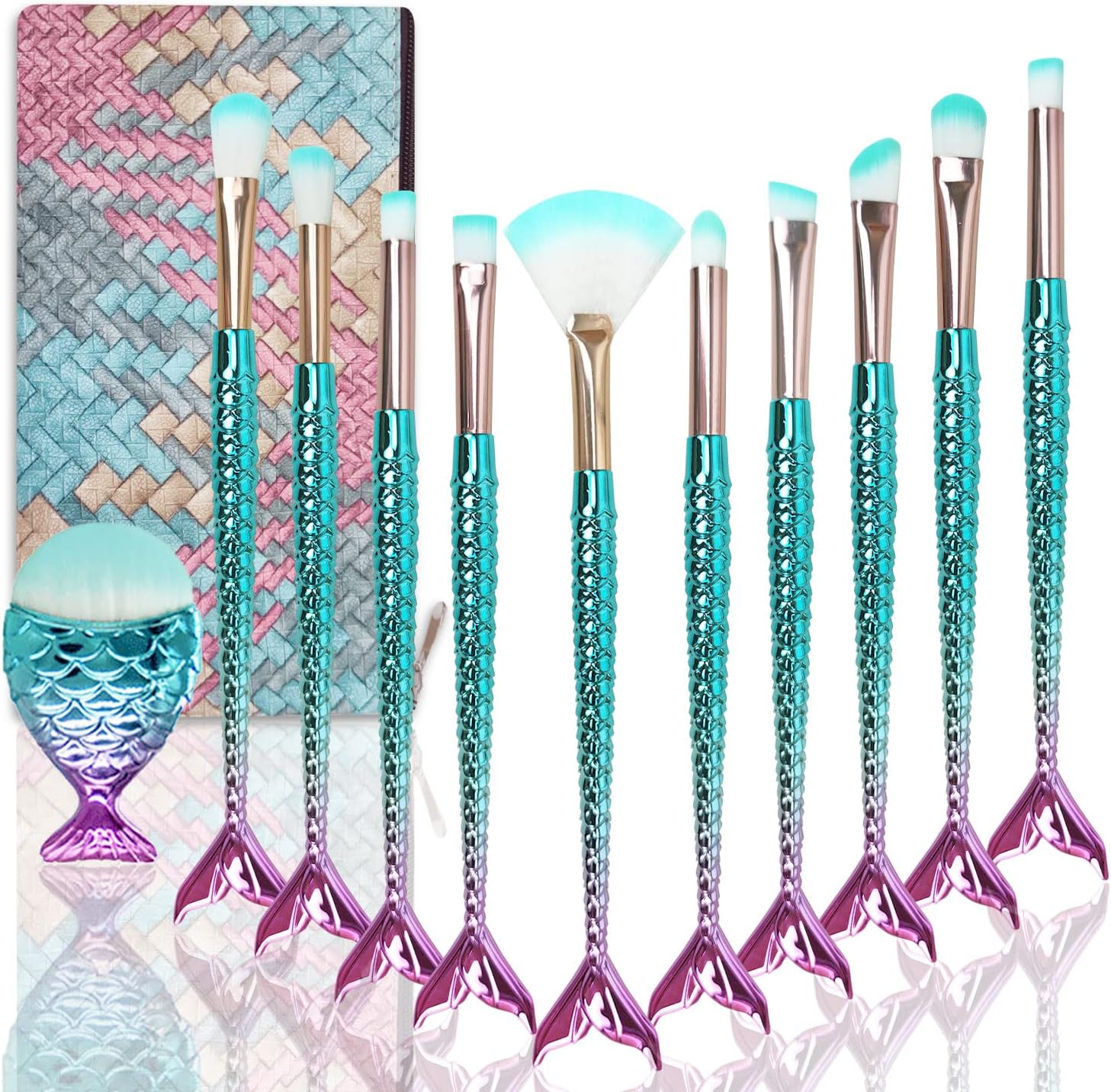 Avis et témoignages clients sur : Set Pinceaux Maquillages Sirènes, Kit Pinceaux Maquillages Mignon, Pinceau Maquillage + Sac pour Fondations, Ombre à paupières, Fards à joues, Filles Cadeau Noël et Anniversaire (11PCS)
