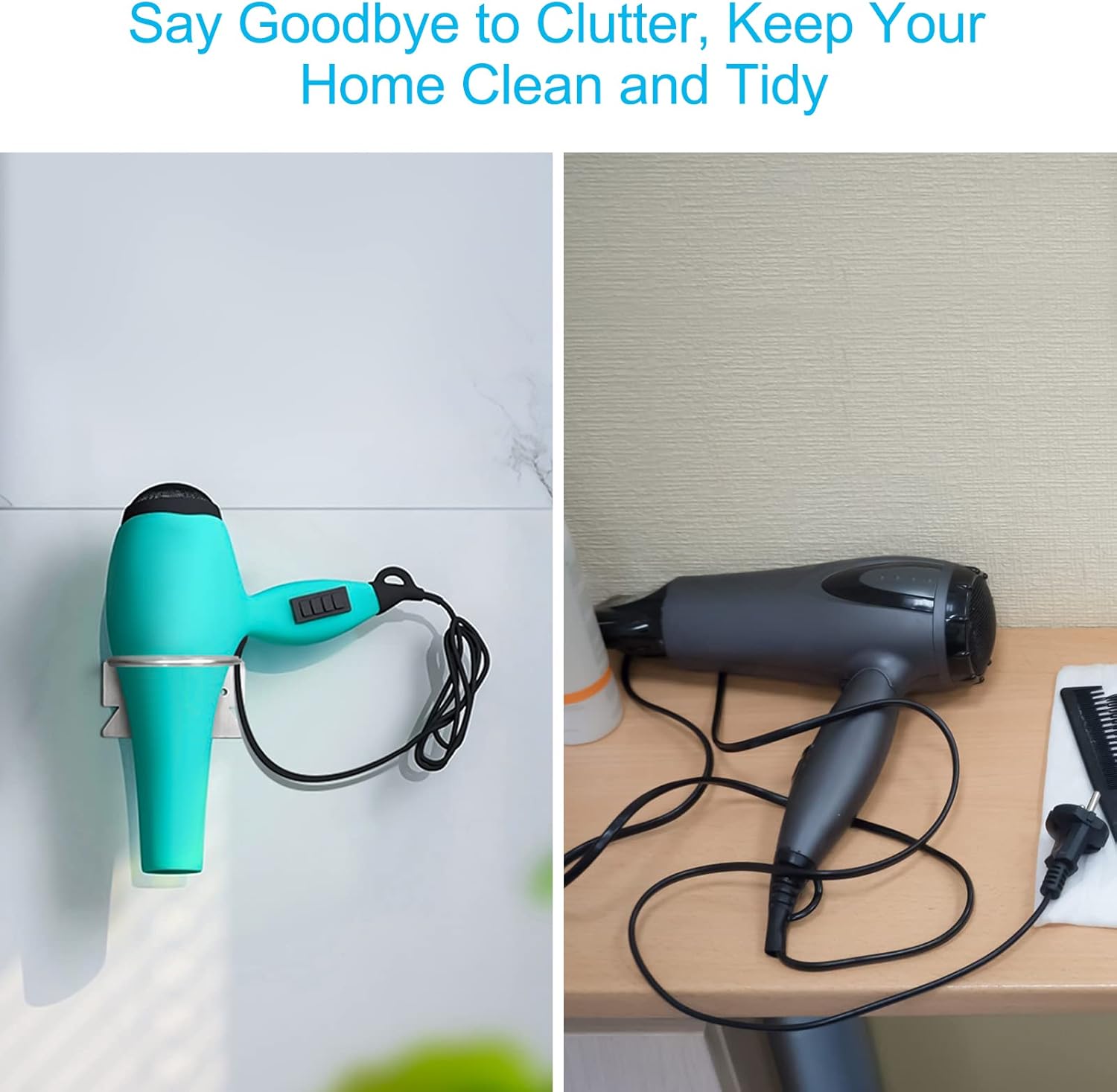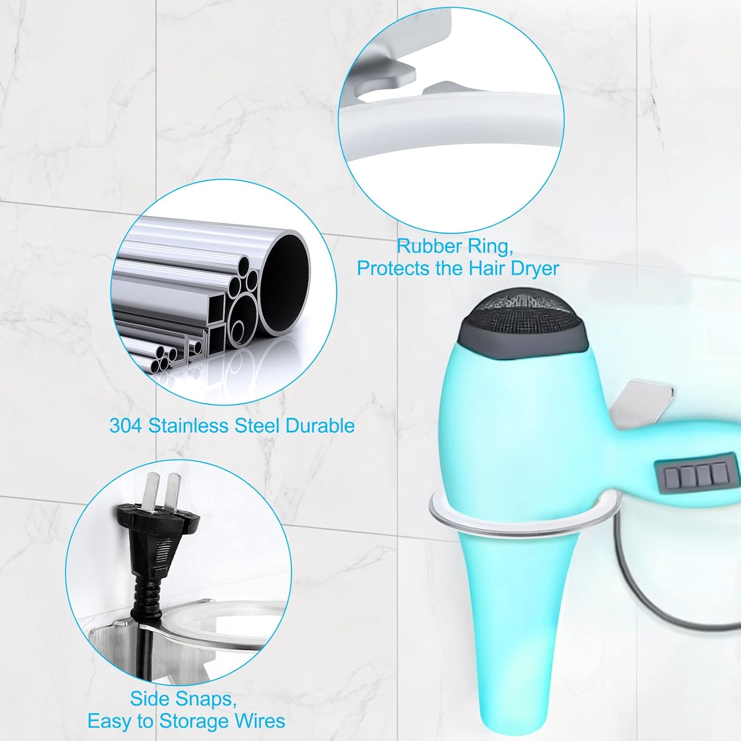 Le support pour sèche-cheveux a été conçu pour s’adapter à tous les types et tailles de sèche-cheveux, garantissant ainsi une compatibilité maximale. Voici les caractéristiques qui font de ce support un excellent choix :