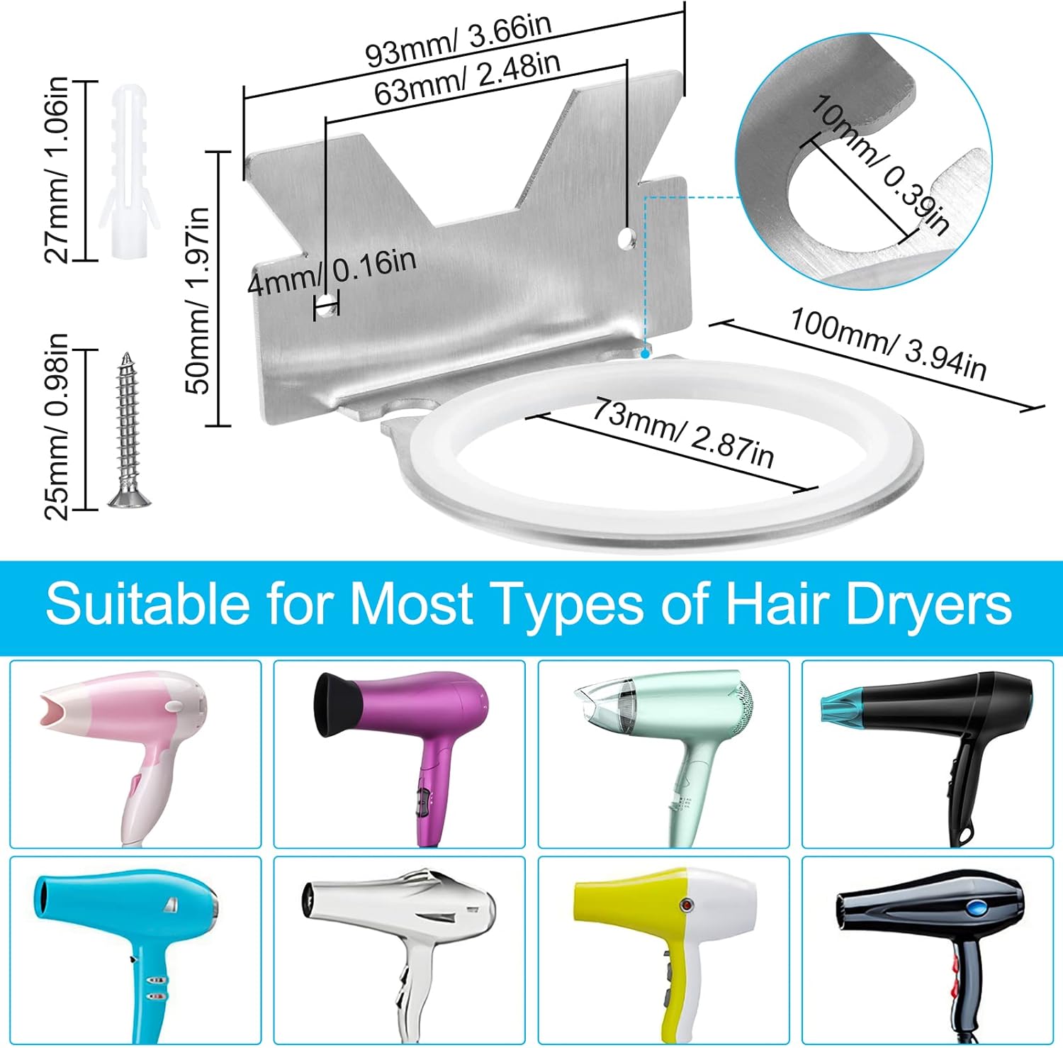 - Large compatibilité : Convient à la plupart des sèche-cheveux grâce à son diamètre intérieur de 7,3 cm.