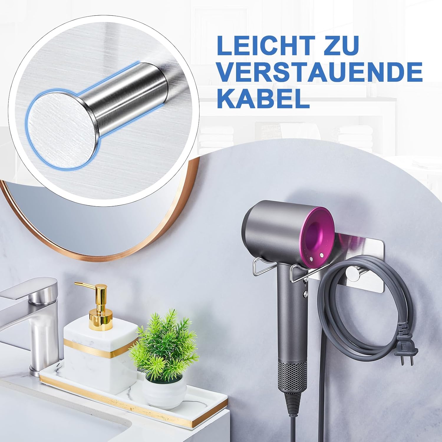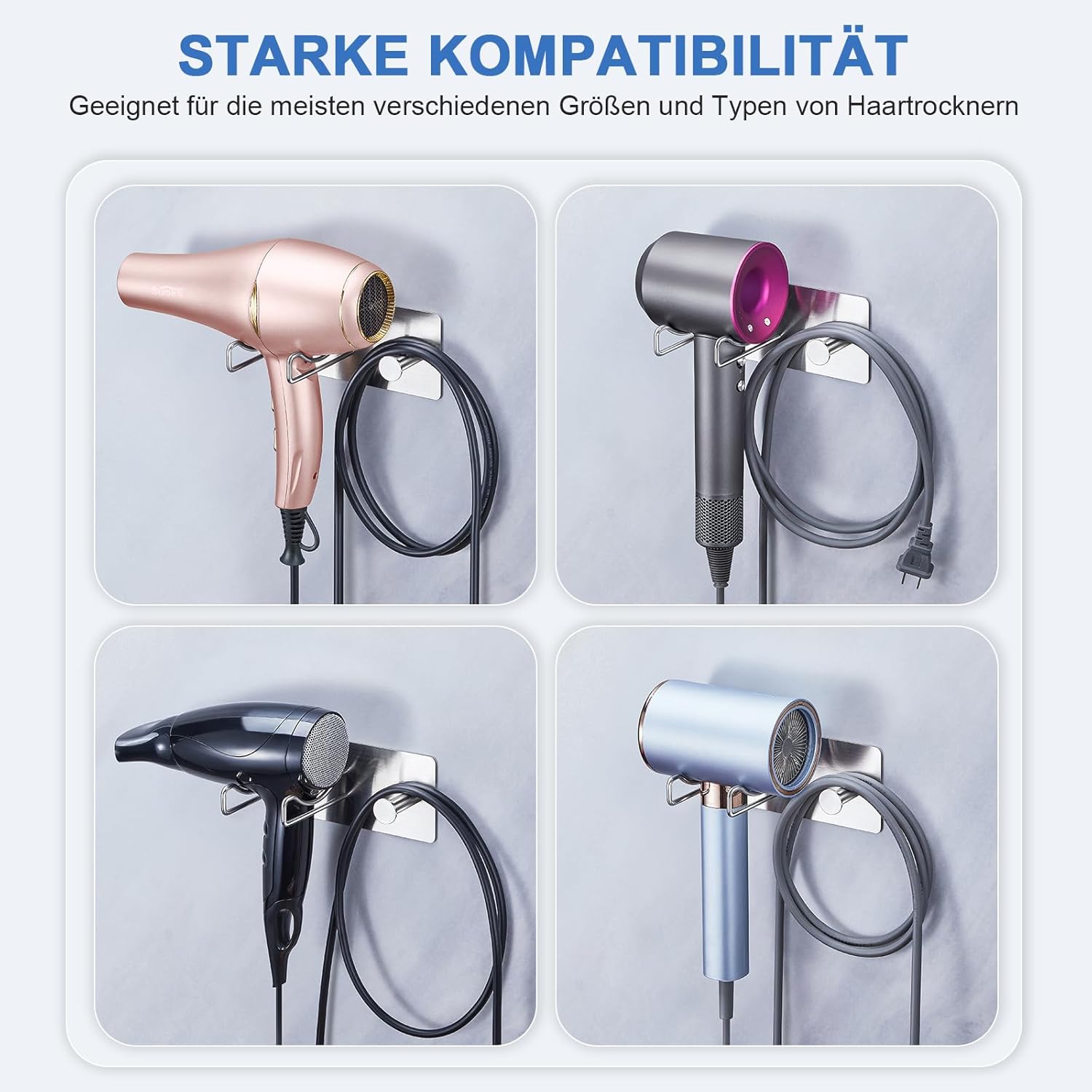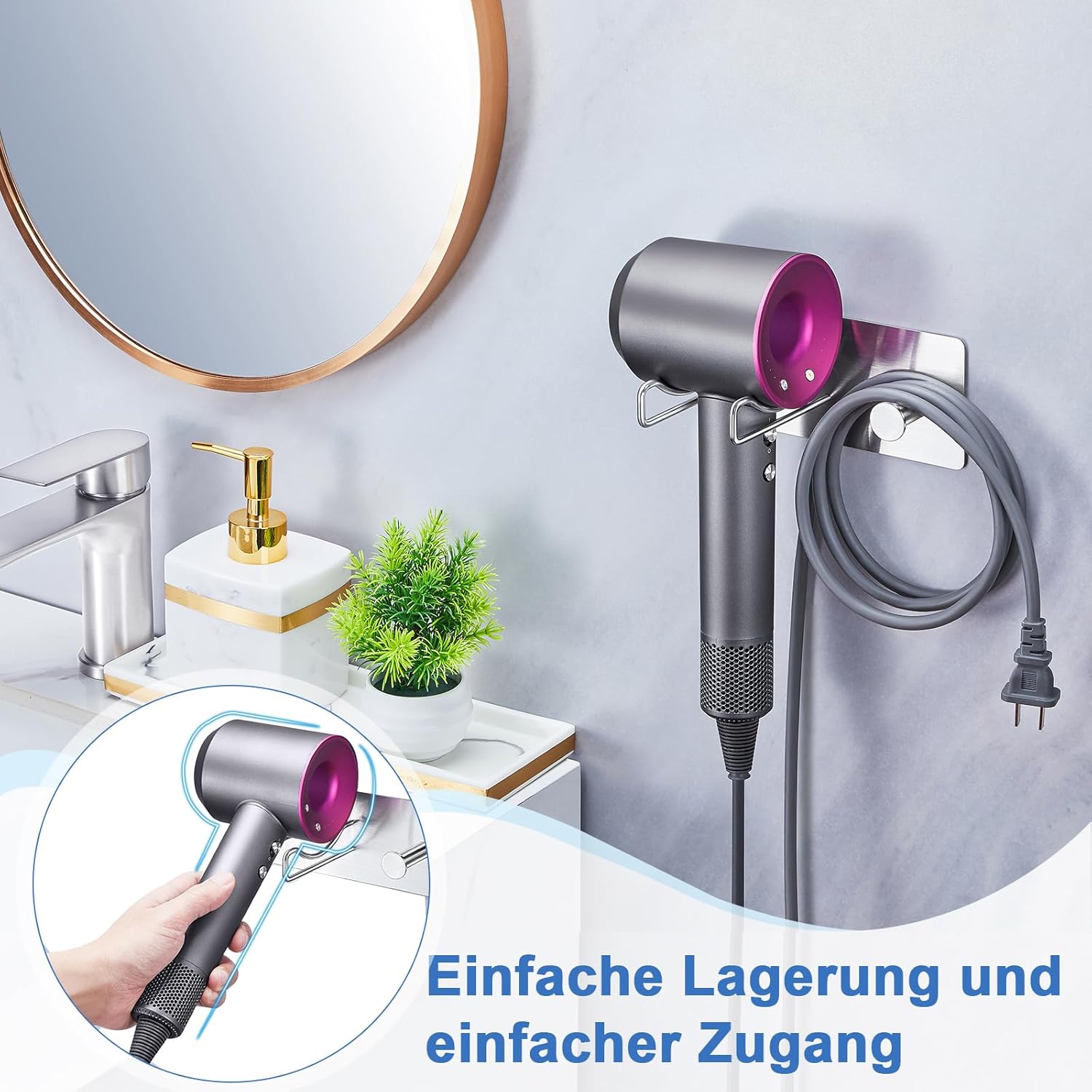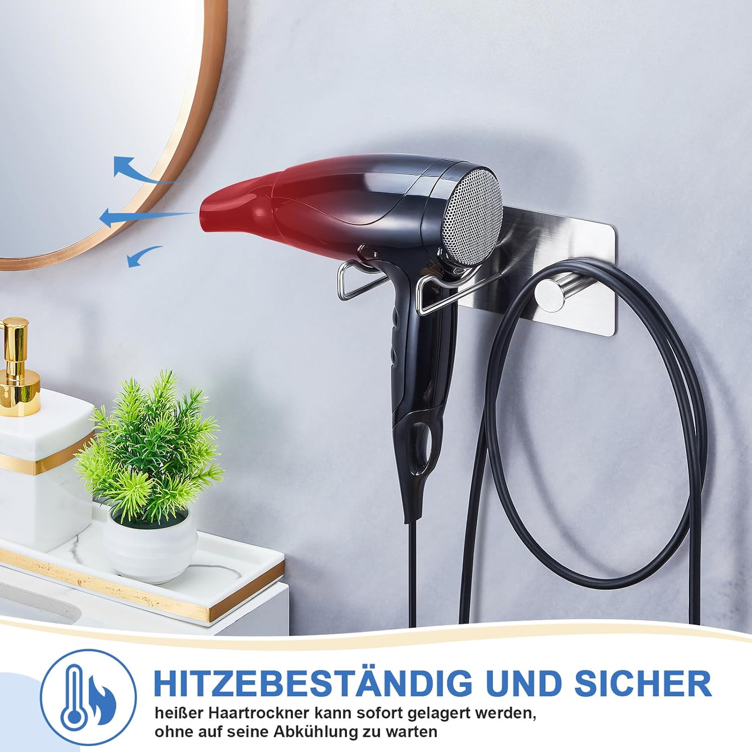 Flavio : Installation super simple grâce à l’adhésif puissant. Mon sèche-cheveux est désormais toujours à portée de main et son câble est bien rangé.