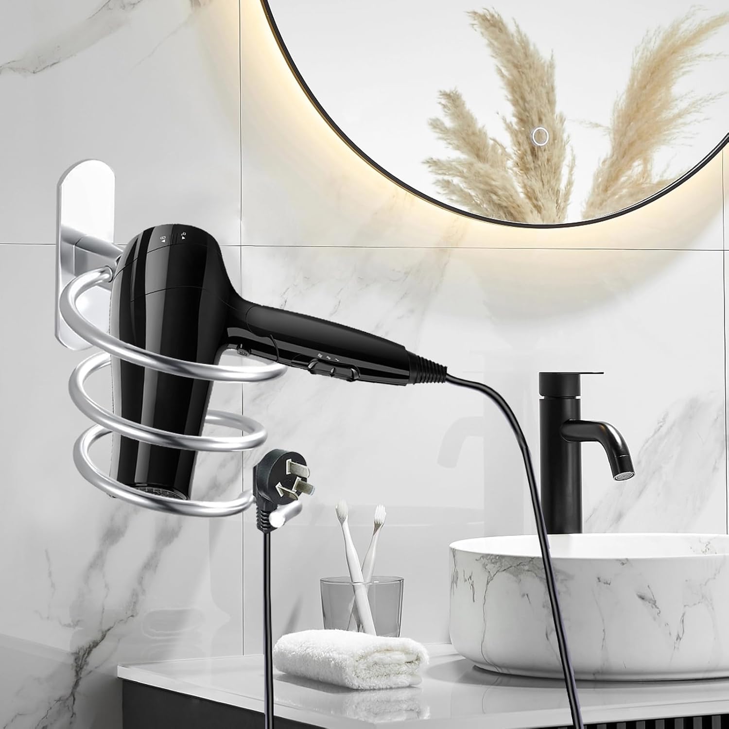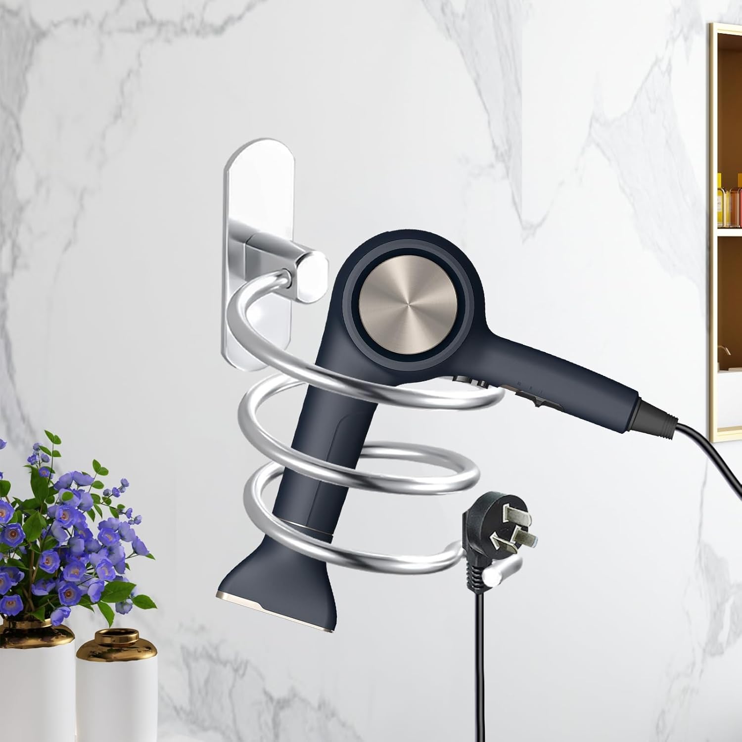 Support de sèche-cheveux mural en spirale : l’accessoire idéal pour une salle de bain élégante et organisée