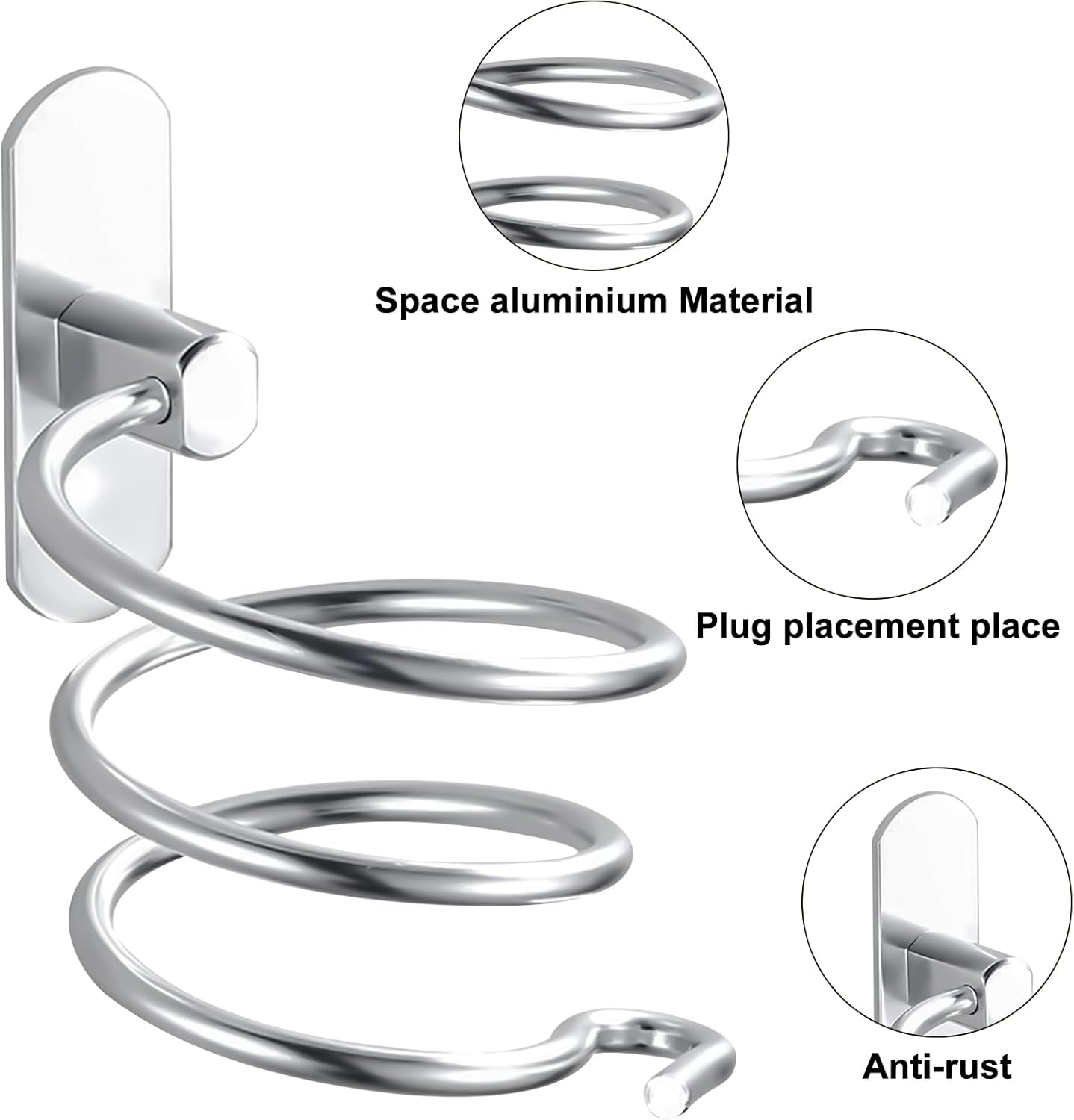 Avis et témoignages clients sur : UptVin Support Seche Cheveux, Porte Seche Cheveux Mural Forme de Spirale avec Support de Câble Accroche Seche Cheveux en Aluminium Accessoires de Salle de Bain, Argent