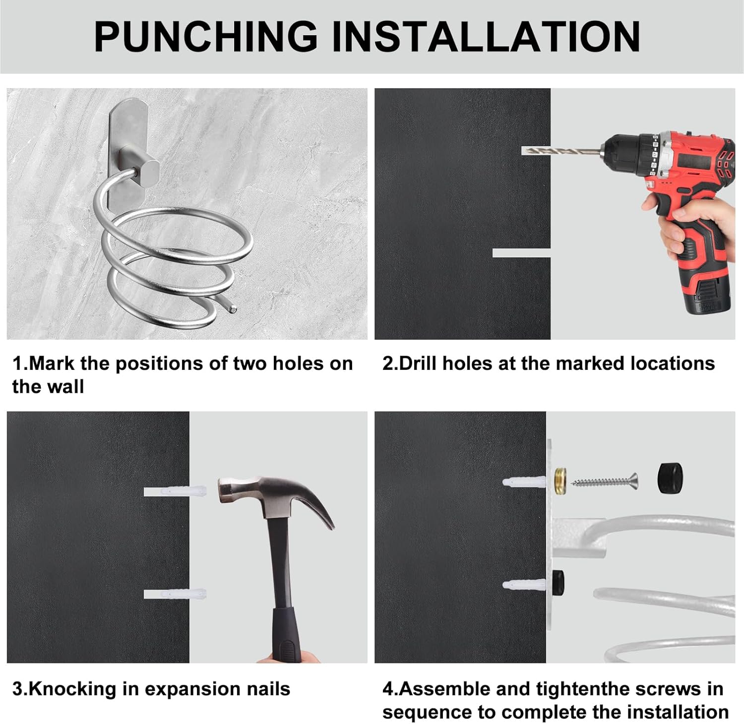 Évitez les tracas des installations compliquées. Grâce aux vis fournies, ce support de sèche-cheveux se fixe aisément à l’endroit souhaité. Pas besoin de percer des trous multiples, il suffit de quelques gestes simples pour que votre sèche-cheveux soit sécurisé et à portée de main.