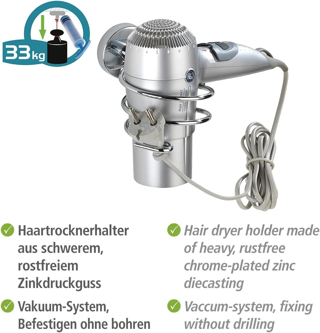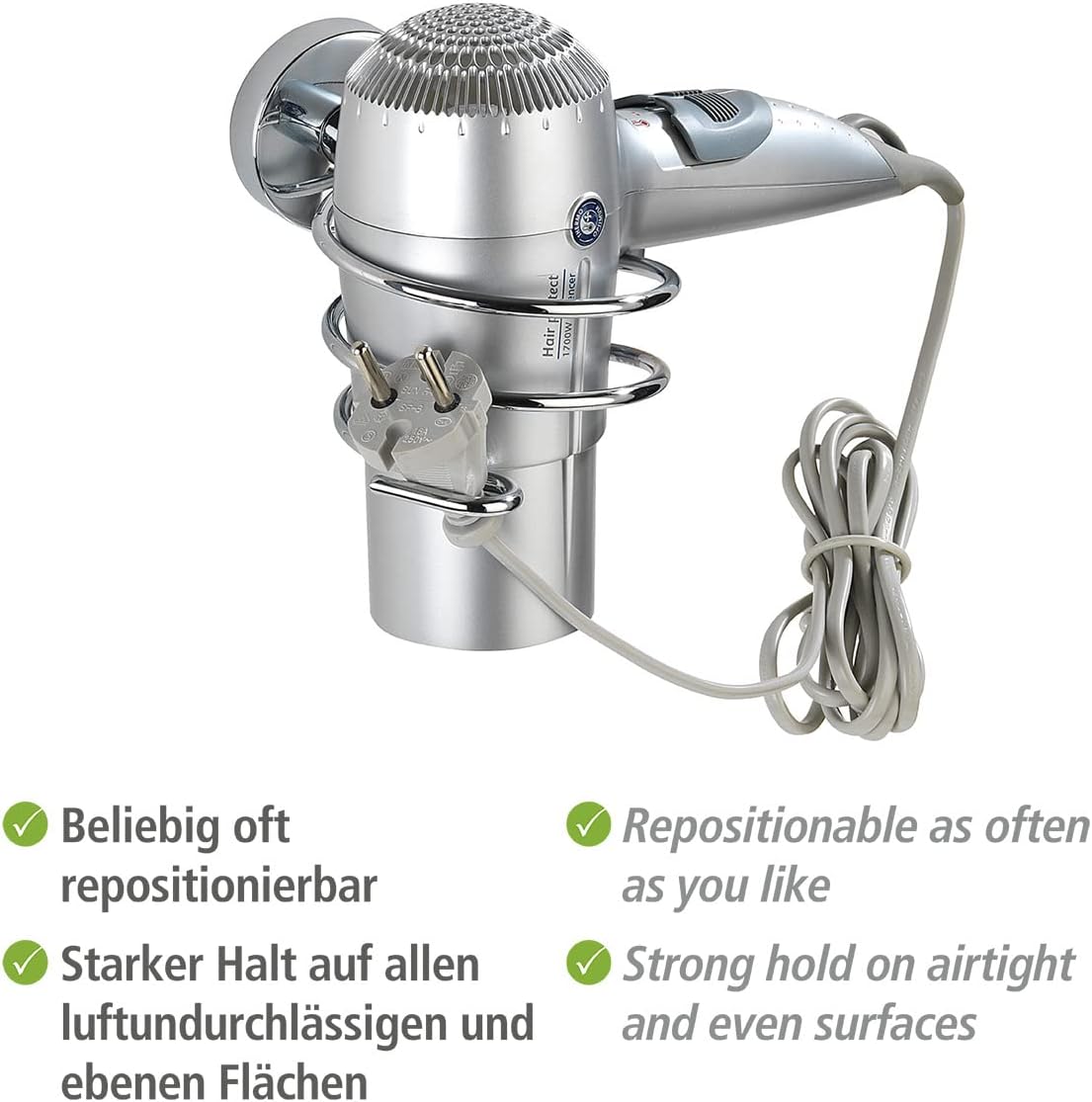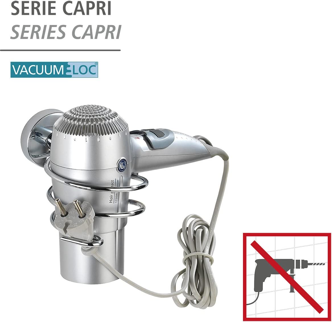 Avis et témoignages clients sur : WENKO Vacuum-Loc® porte sèche-cheveux Capri – fixer sans percer, Zinc moulé sous pression, 10 x 9.5 x 15.5 cm, Chromé