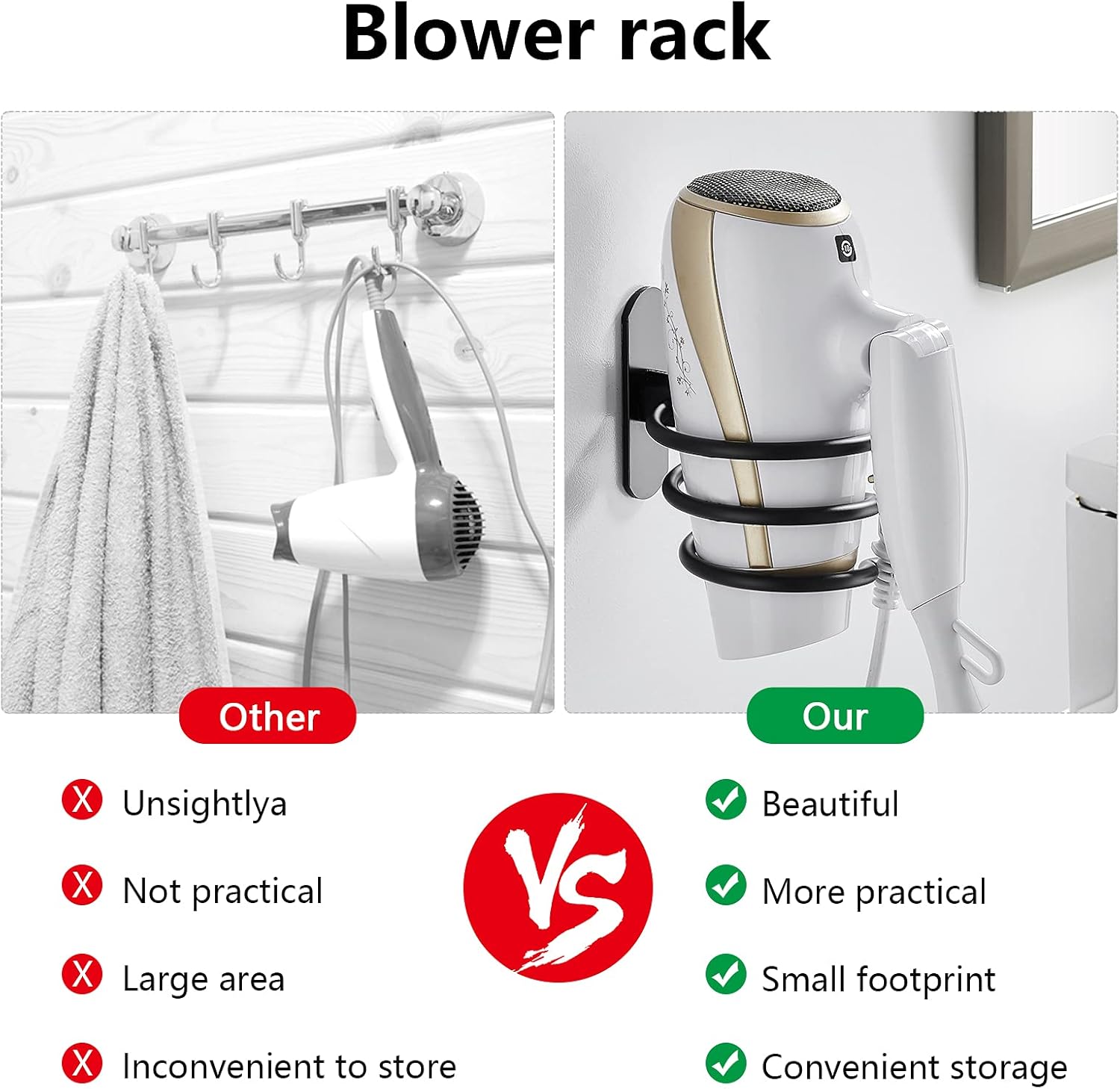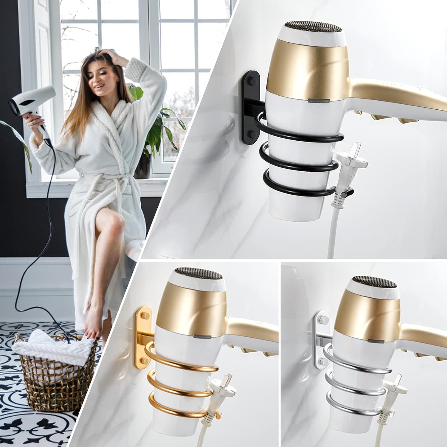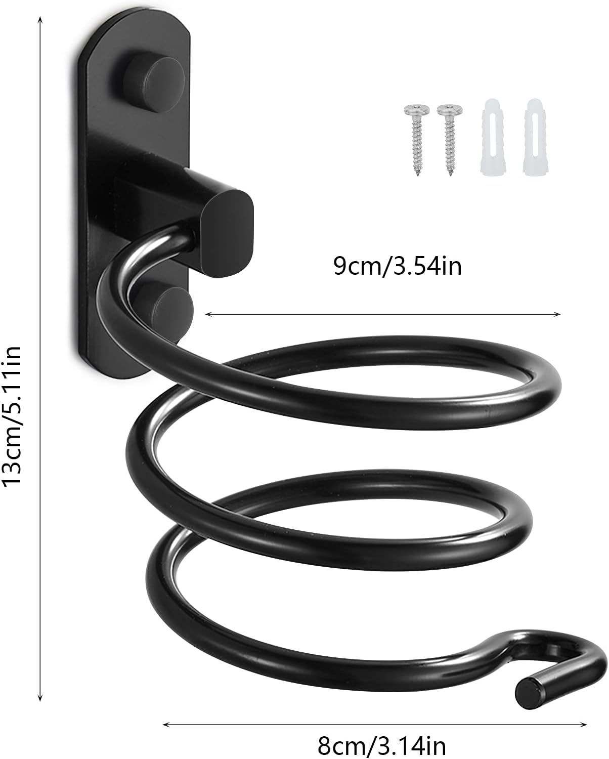 - Inclus : 1 support de sèche-cheveux et toutes les vis nécessaires pour l’installation.