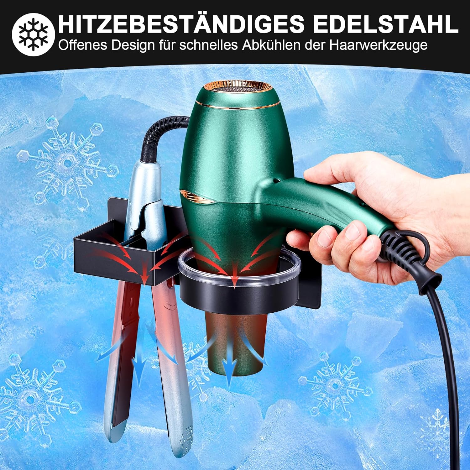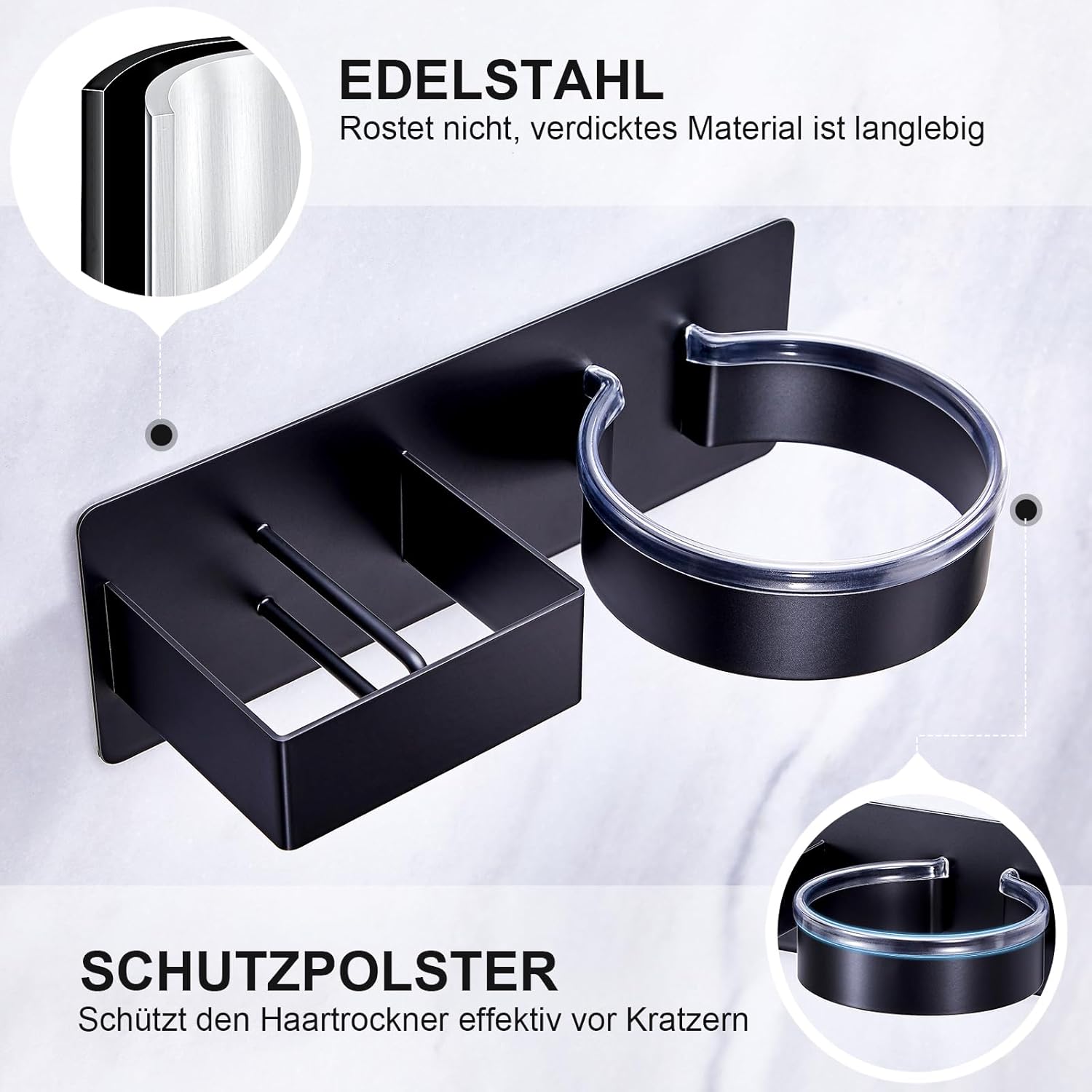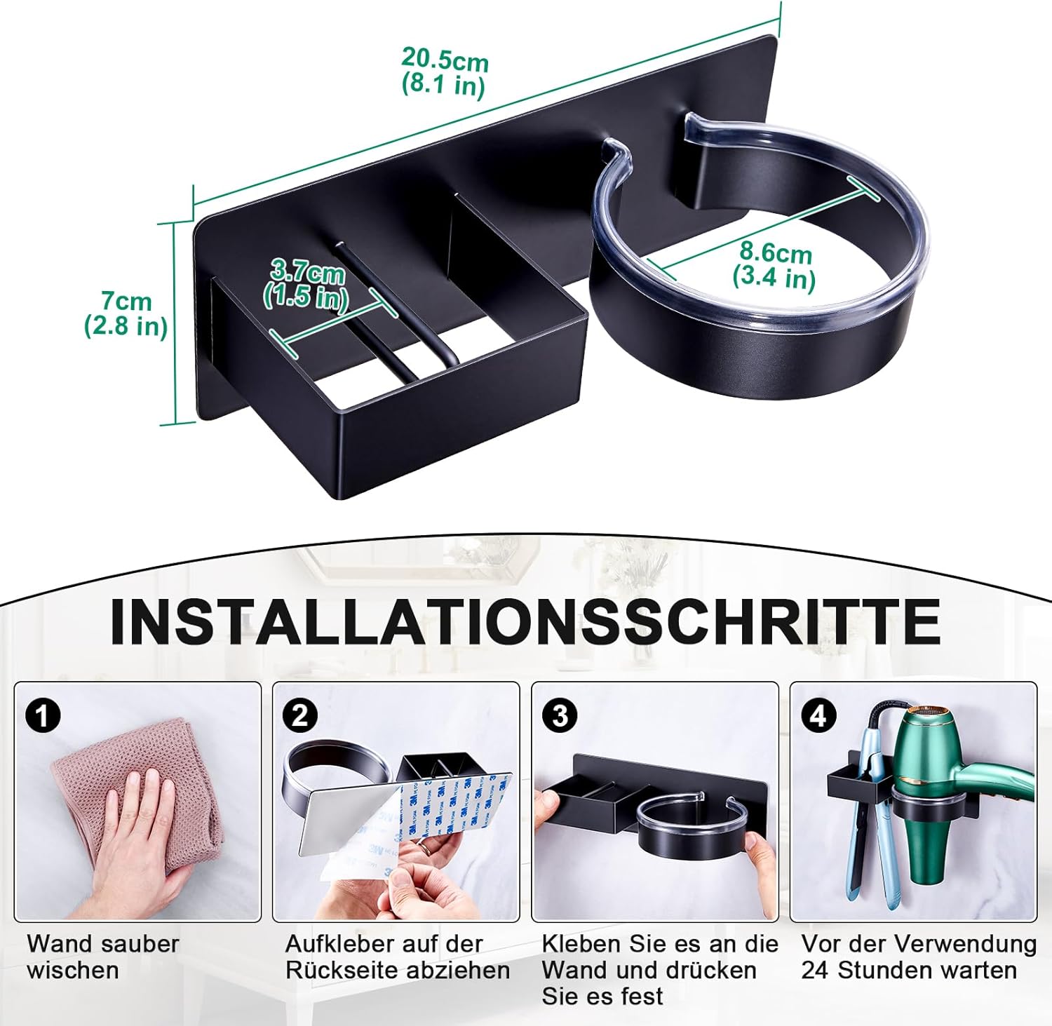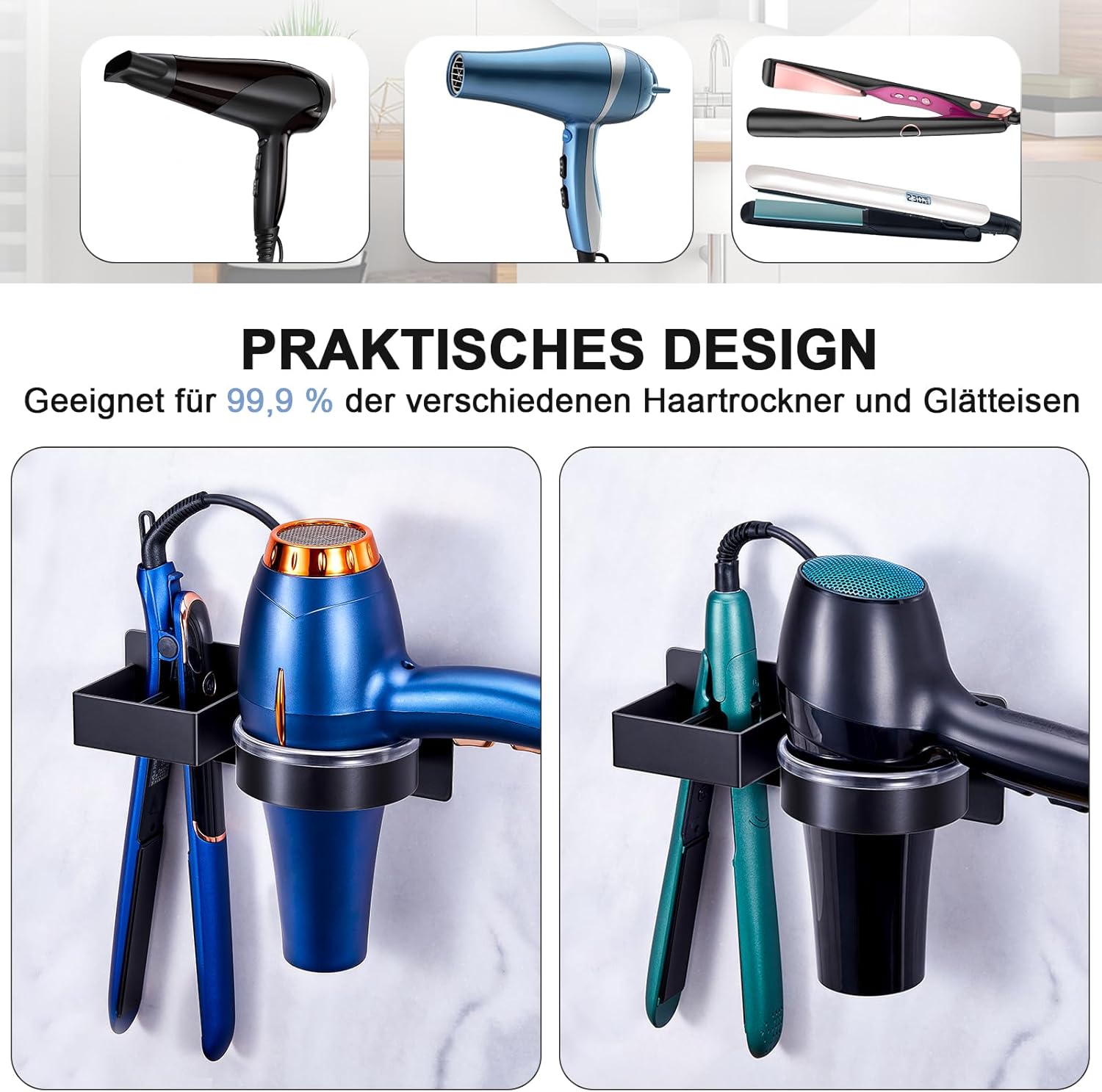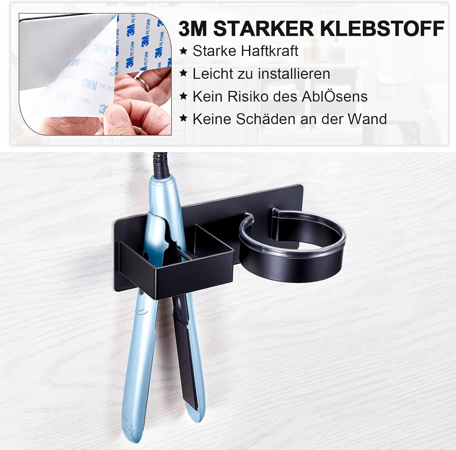 Avis et témoignages clients sur : WAYASI Support Sèche Cheveux et Lisseur, Rangement Sèche Cheveux en Acier Inoxydable, Noir Porte Sèche Cheveux Mural sans Perçage, Porte Lisseur, Style Auto Adhésif Porte Sèche Cheveux Salle de Bain