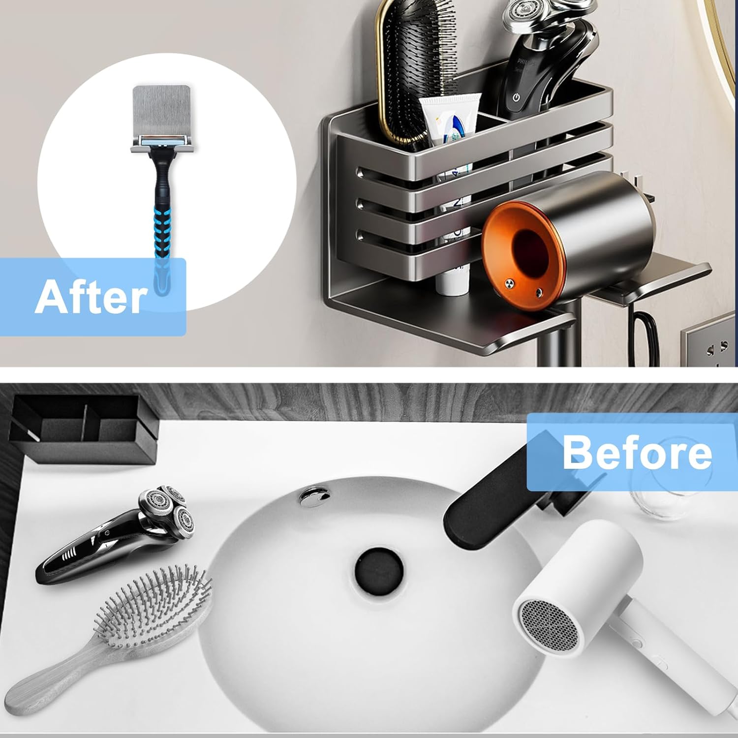 Avis et témoignages clients sur : Support Seche Cheveux sans Percage avec Support pour Rasoir, Porte Seche Cheveux Mural avec Range-Câbles, Rangement Salle de Bain pour Hôtel de Chambre à Coucher de Salle de Bain