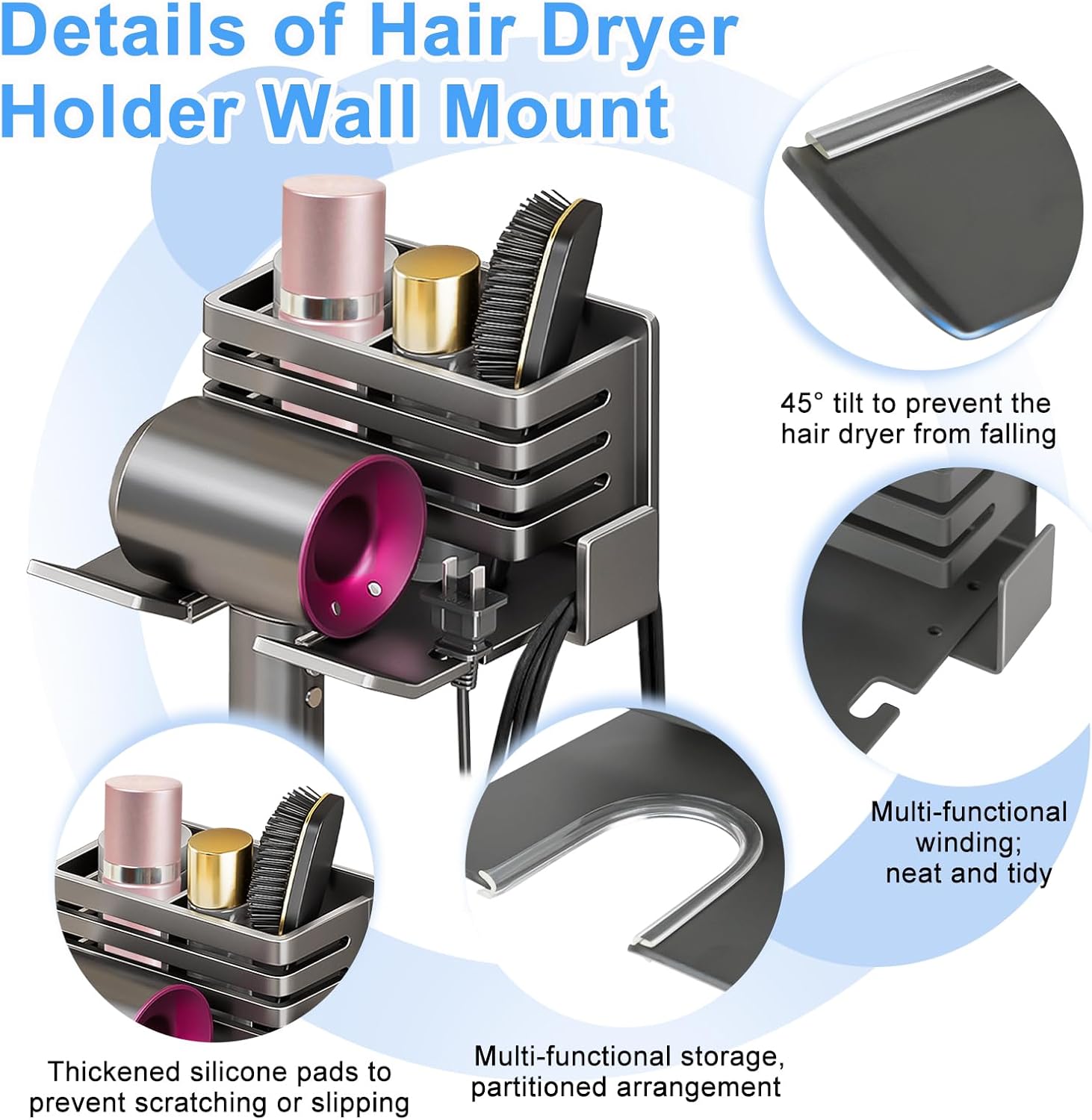 - Protection contre les chutes : Le design surélevé et le coussin en silicone protègent votre sèche-cheveux des rayures et des chutes accidentelles.