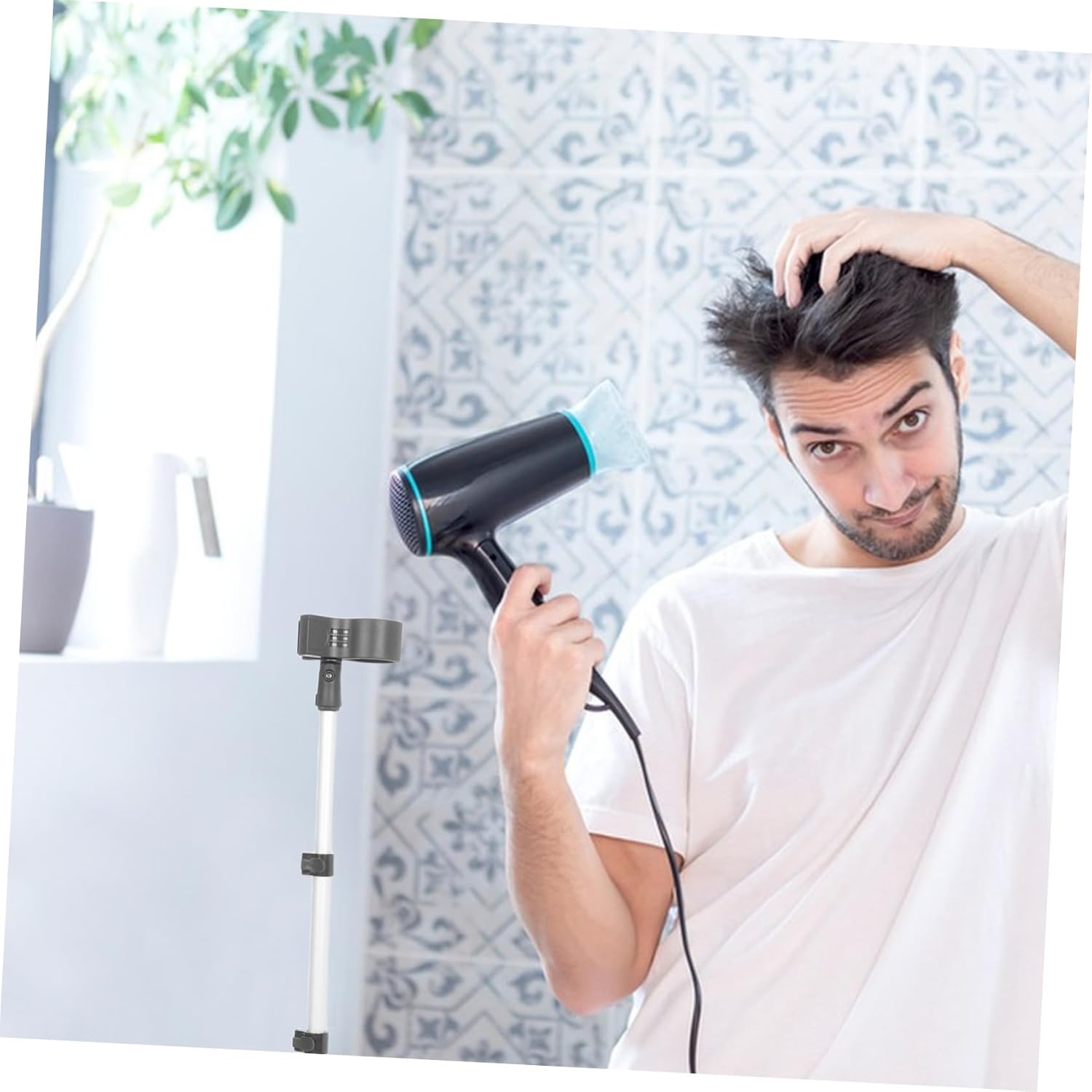 Réponse : Oui, vous pouvez facilement ajuster la hauteur et l’angle pour un meilleur confort lors du séchage de vos cheveux. - Question : Ce support convient-il pour un usage professionnel ?