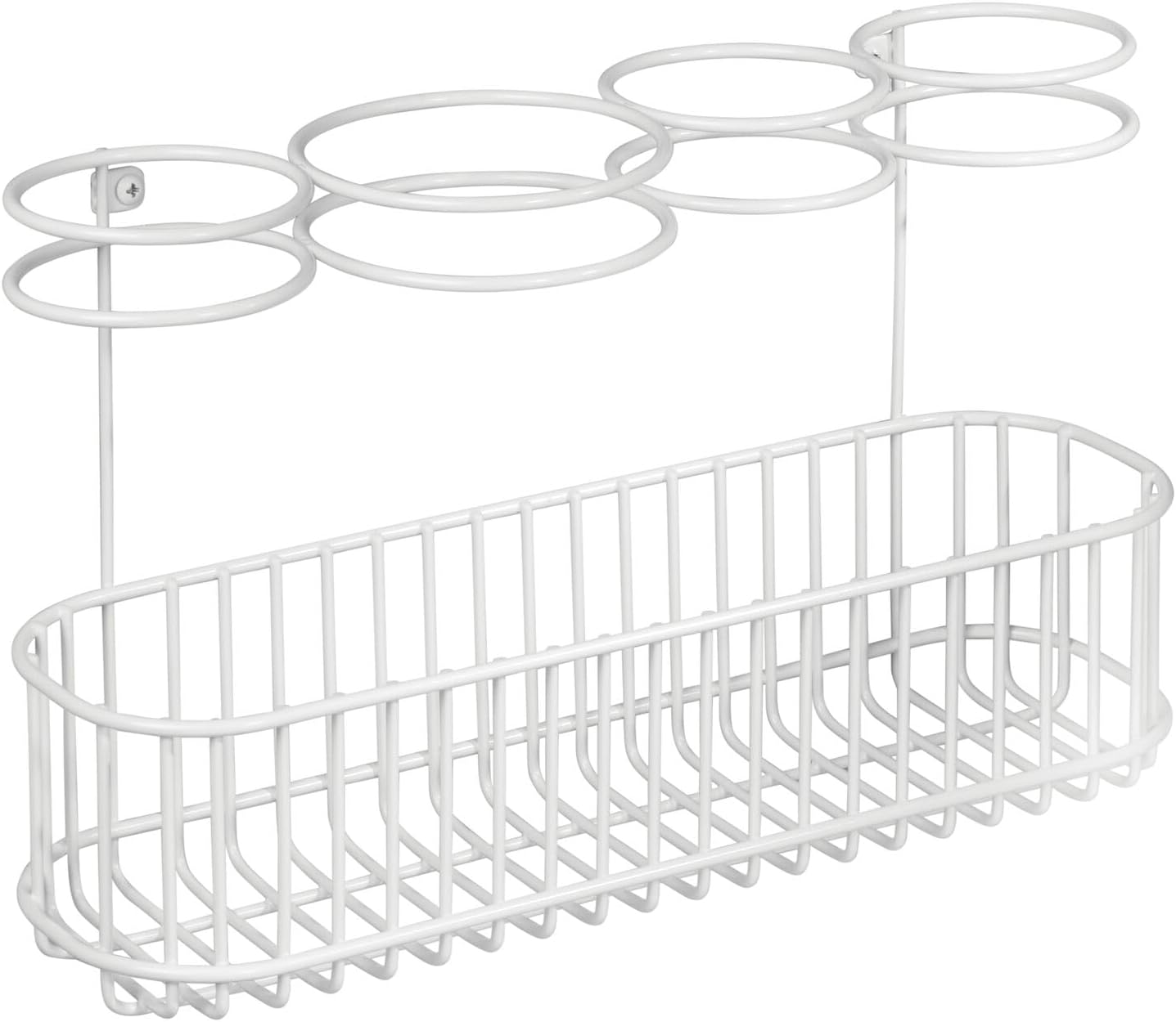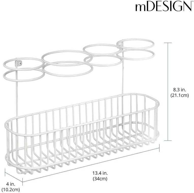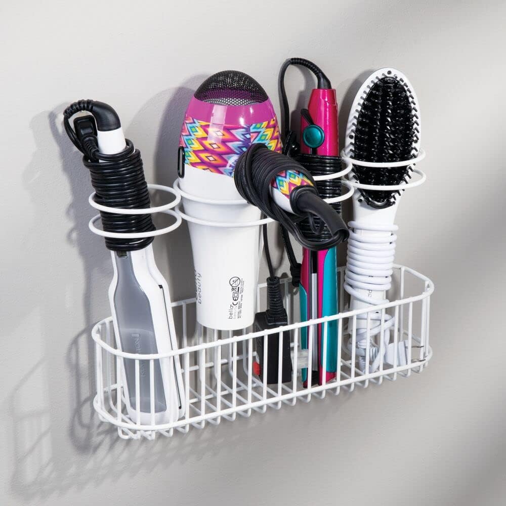 Avis et témoignages clients sur : mDesign Support Sèche-Cheveux – Salle de Bain Fer à Lisser et Séchoir à Cheveux – Panier Suspendu en Métal pour Appareils Chauffants – Blanc