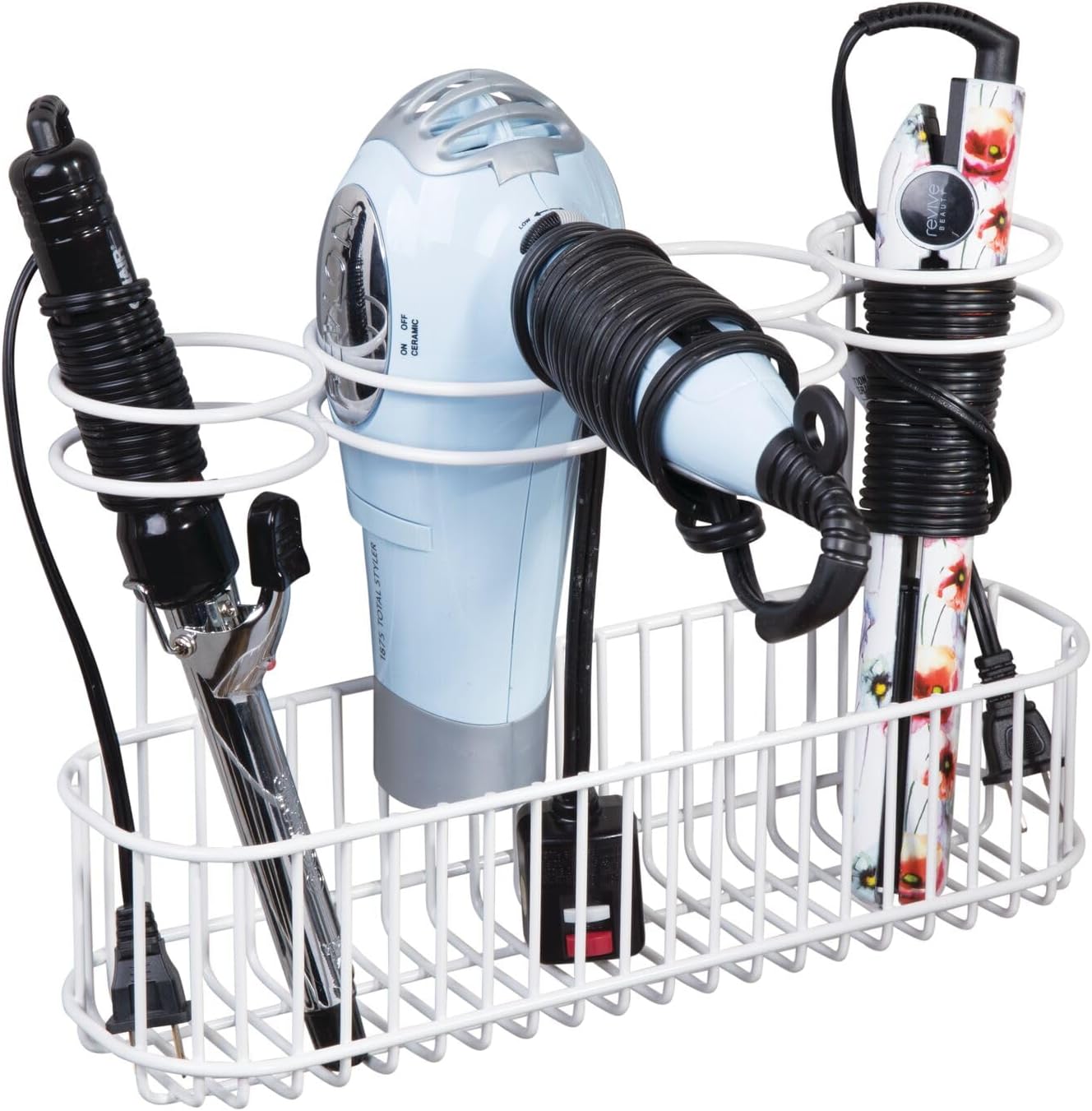 - Avec quatre compartiments, cet organisateur garde vos fers à lisser et sèche-cheveux bien organisés et accessibles.