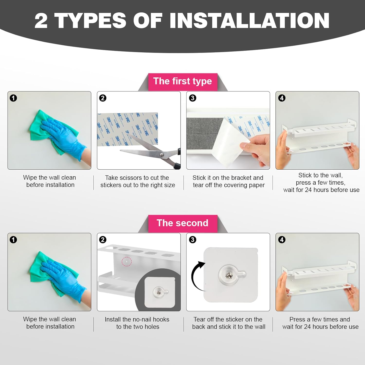 Avant d’installer le support, assurez-vous que la surface est propre et sèche. Attendez 24 heures après l’installation pour l’utiliser afin de garantir une adhérence optimale. Pensez à organiser vos produits de soin par ordre d’utilisation pour un accès rapide et efficace.