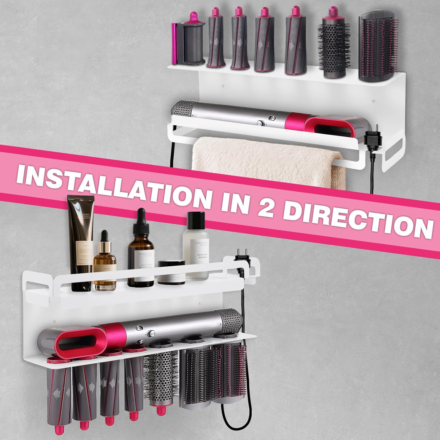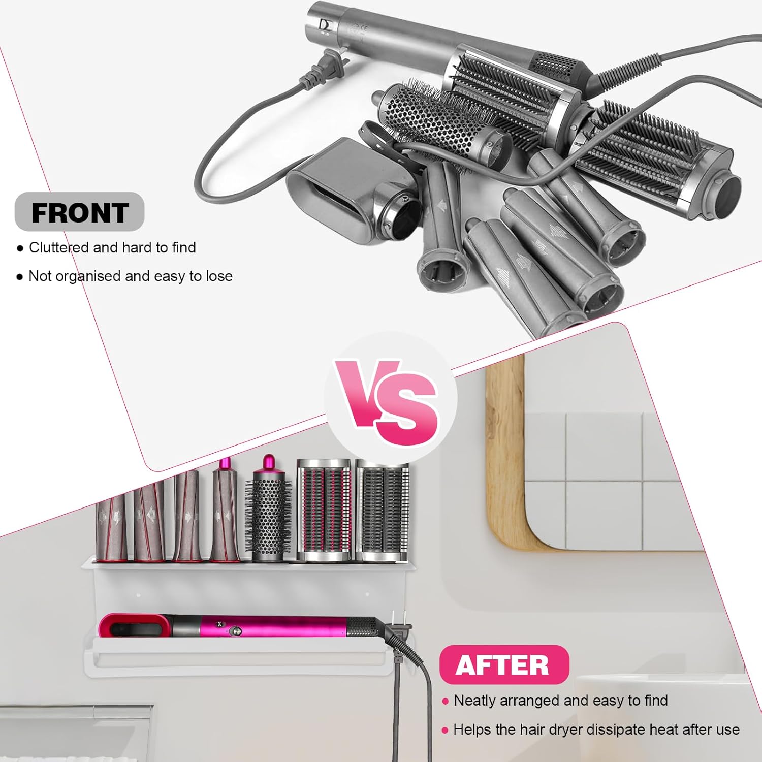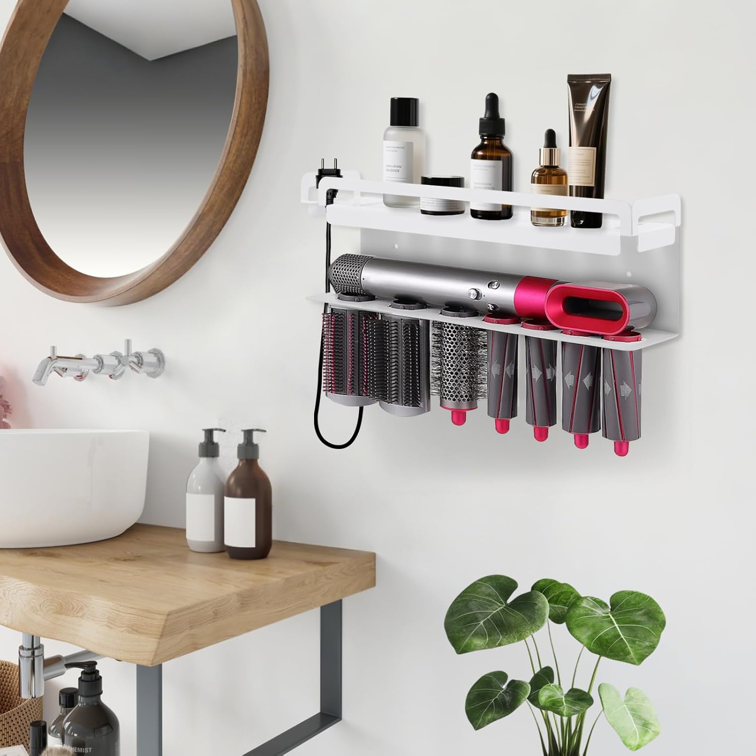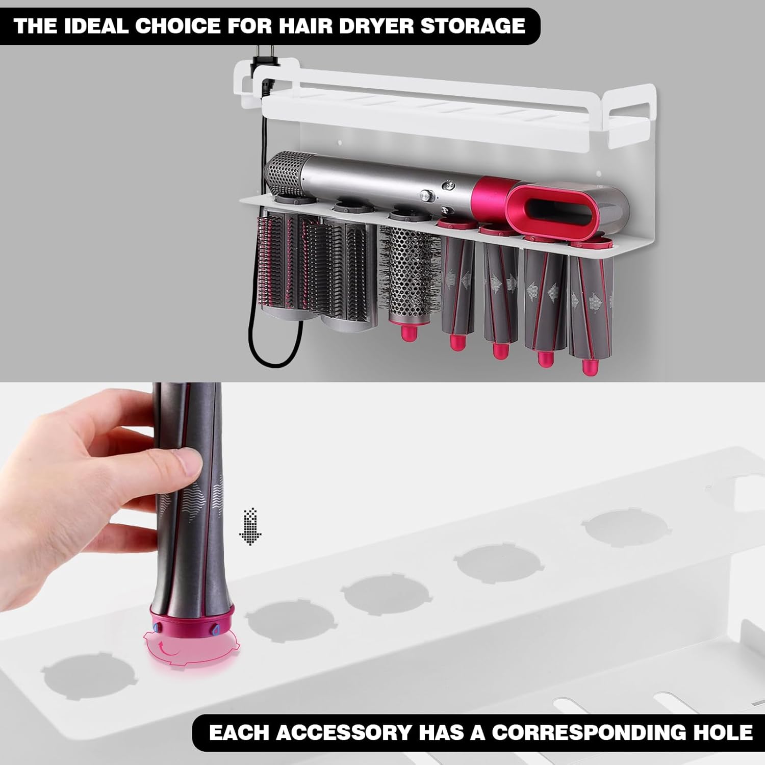 - Le produit inclut un support adapté pour les accessoires Dyson Airwrap, offrant un rangement ordonné.