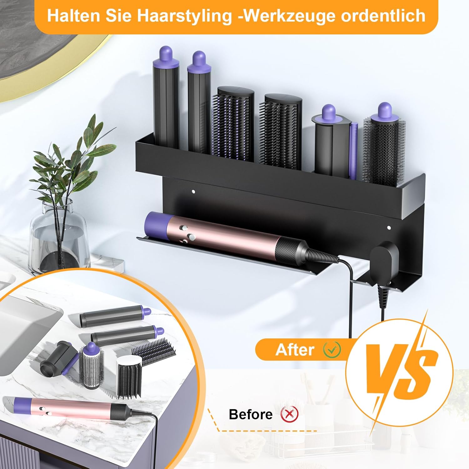 Maxime : Bien que la partie supérieure soit un peu plate, ce support est très pratique pour garder mon Dyson Airwrap à portée de main. Pratique et élégant, il a trouvé sa place dans ma salle de bain.