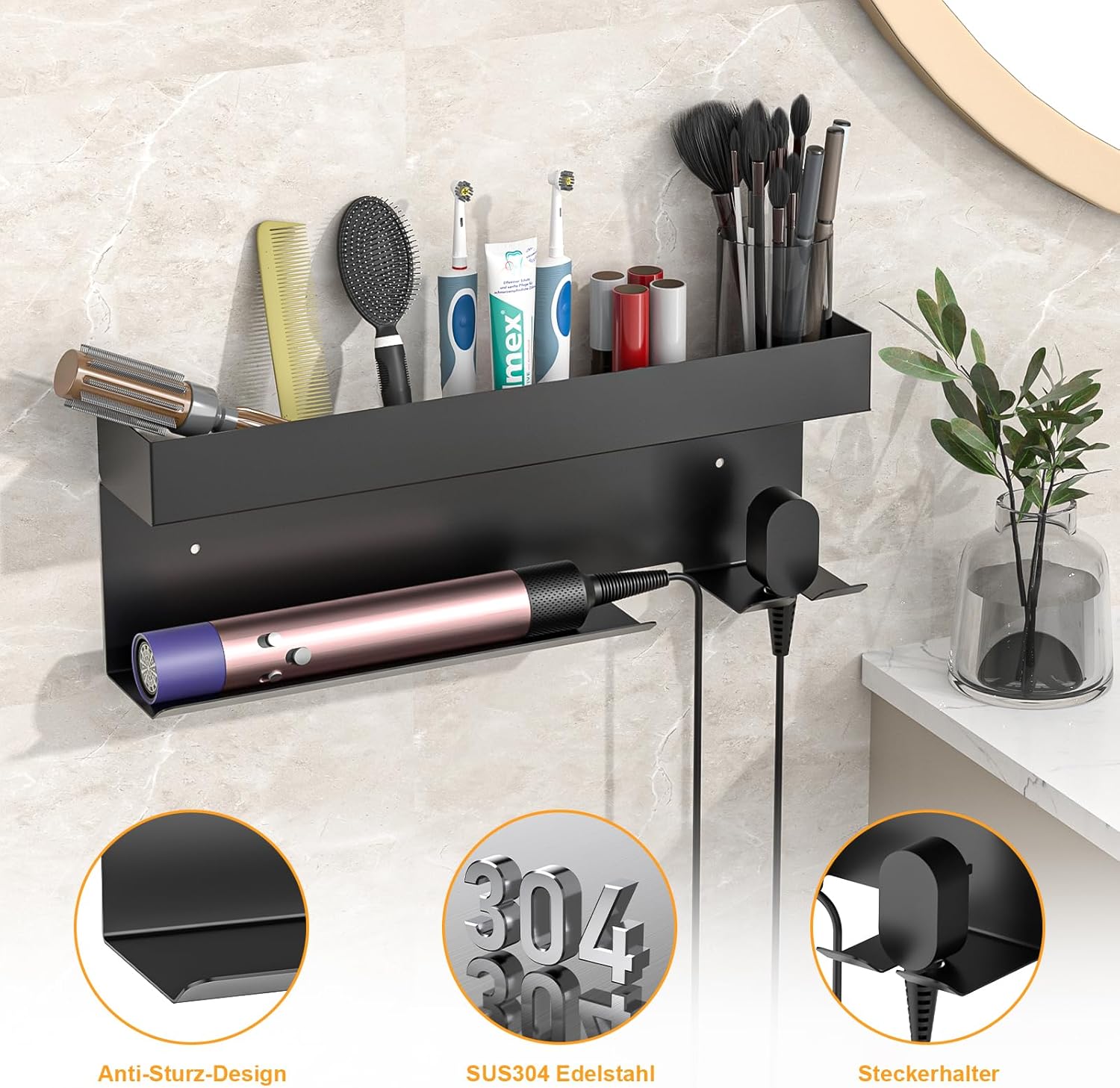 Transformez votre routine de coiffure avec un support de sèche-cheveux innovant, alliant design élégant et fonctionnalité exceptionnelle. Ce support mural en acier inoxydable est bien plus qu’un simple accessoire : il transforme votre espace en un lieu organisé et chic, tout en offrant un accès facile à vos appareils de coiffure. Dites adieu au désordre et bonjour à la simplicité avec ce rangement astucieux !