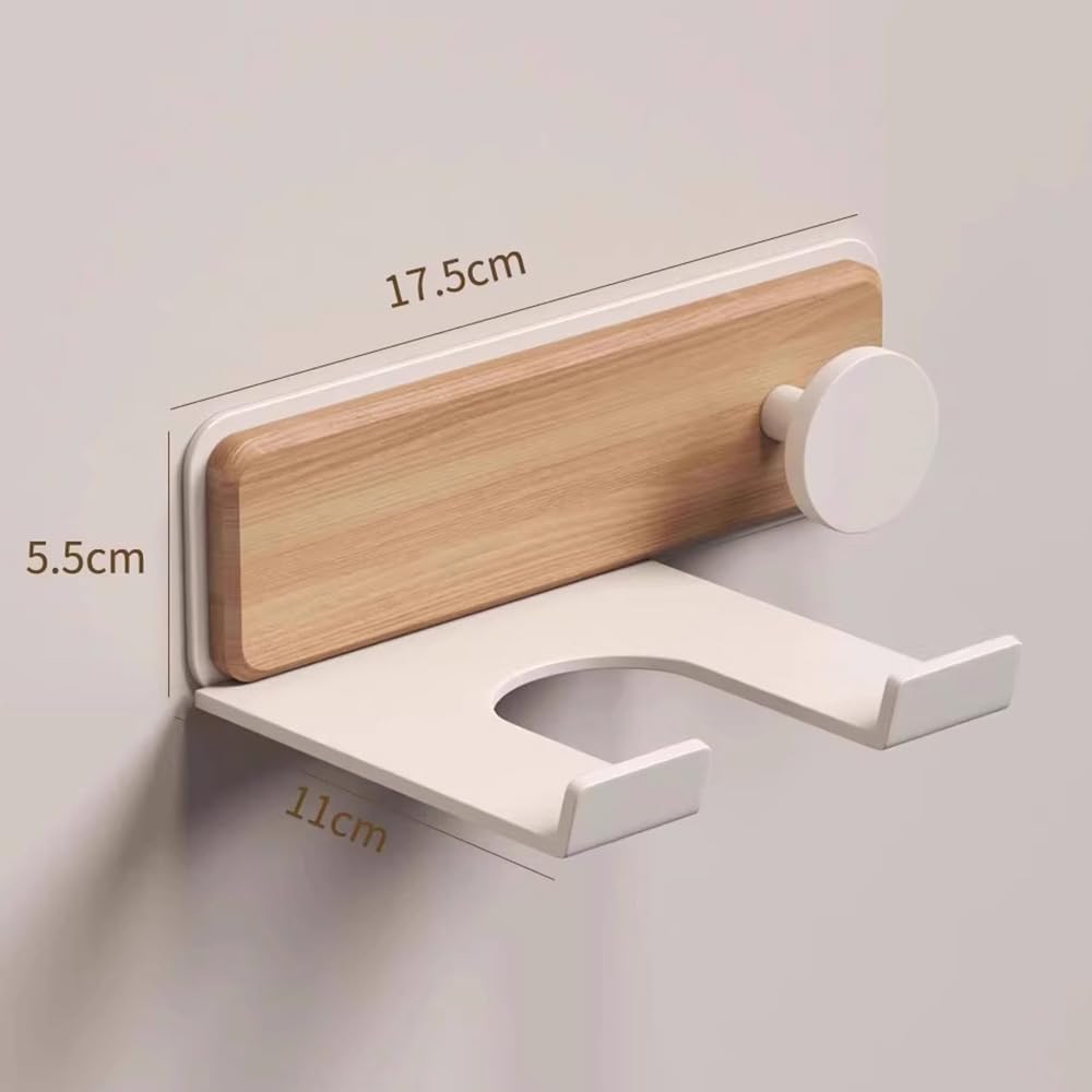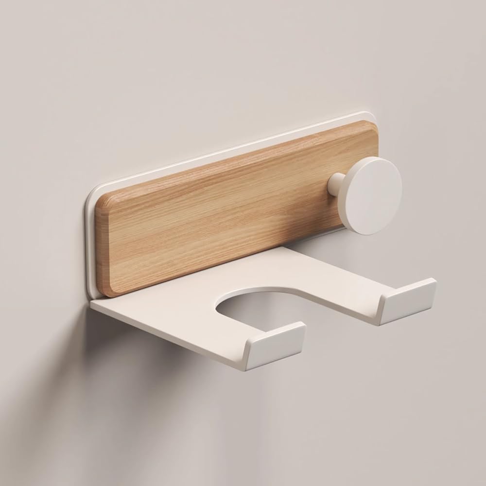 Ce porte-sèche-cheveux se distingue par son cadre en aluminium robuste et sa plaque en bois haut de gamme, disponible en hêtre clair ou noyer foncé. Ce mariage de matériaux assure non seulement une grande durabilité, mais également un rendu visuel moderne et épuré, parfait pour toute salle de bain.