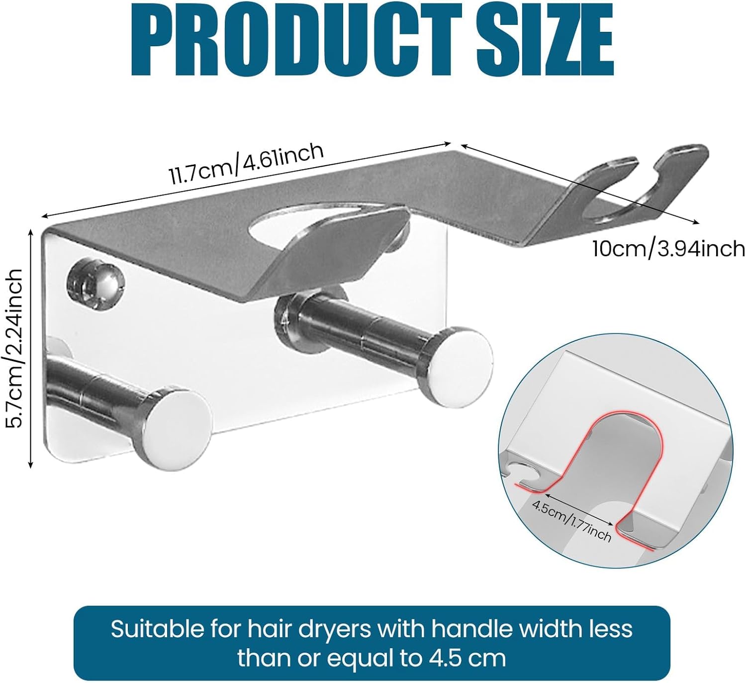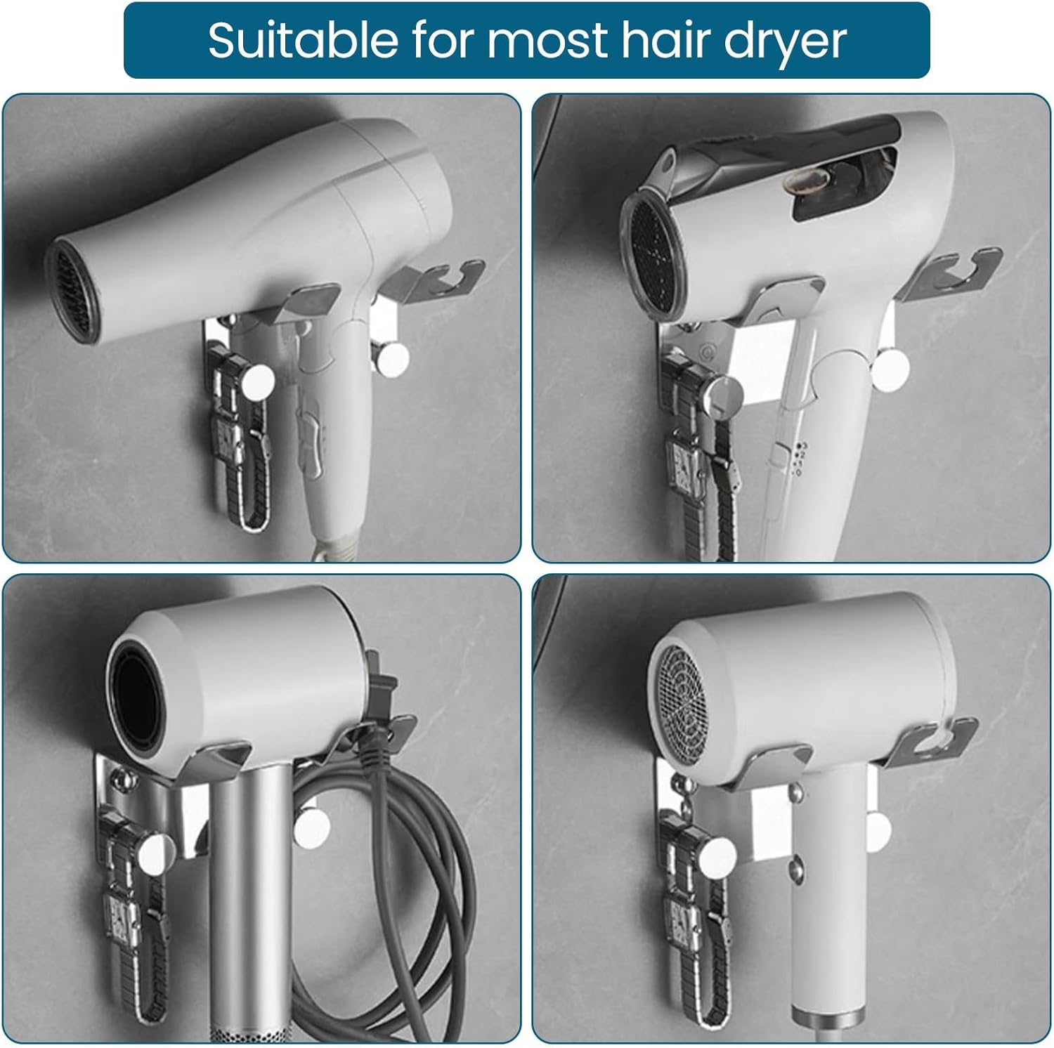 - Compatible avec la plupart des sèche-cheveux, grâce à une distance de crochets optimisée.
