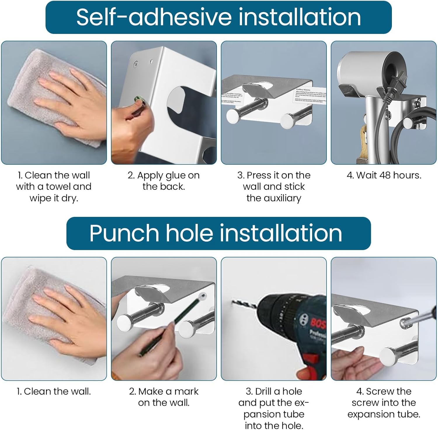 En résumé, ce support sèche-cheveux en acier inoxydable 304 allie élégance, durabilité et praticité. Un choix judicieux pour maintenir votre salle de bain ordonnée tout en ajoutant une touche moderne. Découvrez toutes ses fonctionnalités et préparez-vous à optimiser votre expérience de coiffage dès aujourd’hui !